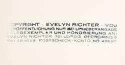 Evelyn Richter (1930 Bautzen - 2021 Dresden). Deutsche Fotografin. Ausbildung als Fotografin in Dresden bei Franz Fiedler und Pann Walther. 1948-51 Laborantin bei den Vereinigten Gewerbestätten Dresden und Fotografin an der TU Dresden. Ab 1953 Studium der Fotografie an der Hochschule für Grafik und Buchkunst Leipzig (HGB) bei Professor Johannes Widmann. 1955 Exmatrikulation. Seit 1980 freischaffend tätig (Theaterfotografie, Werbung). Ab 1981 Dozentin an der HGB in Leipzig, dort 1991-2001 Ehrenprofessur. 1990/91 Lehrauftrag für Fotografie an der Fachhochschule Bielefeld. 1992 Kulturpreis der Deutschen Gesellschaft für Photographie, 2006 Kunstpreis der Landeshauptstadt Dresden. Das Hauptwerk wird seit 2009 im seit 2009 im Evelyn-Richter-Archiv im Museum der bildenden Künste Leipzig verwaltet.