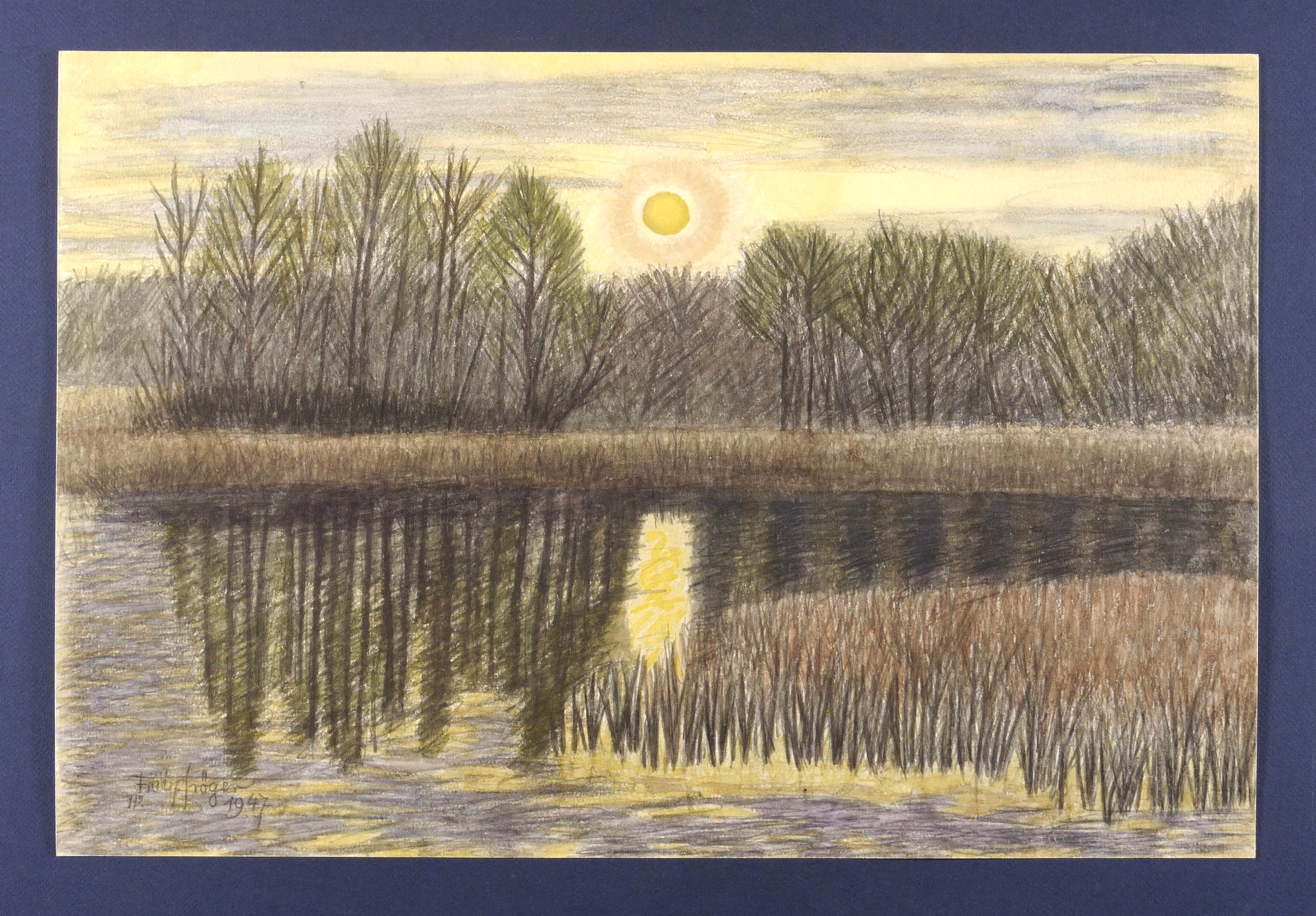 Tröger, Fritz. – „Untergehende Sonne überm Waldteich”.