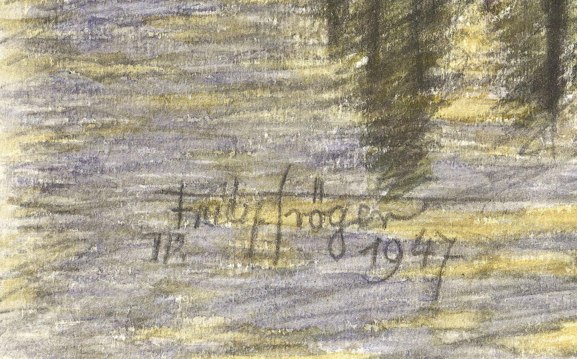 1947. Aquarell, über Bleistift. auf hellem P.M.-Fabriano-Büttenkarton. – Originale Künstlergrafik, von Fritz Tröger. – Unikat. – 38,6 x 57,4 cm (Darstellung / Blatt).