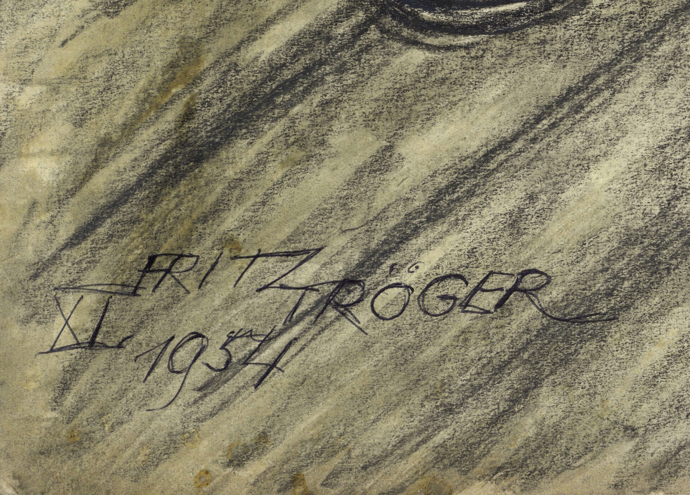 Fritz Tröger (1894 Dresden - 1978 Dresden). Deutscher Maler und Grafiker. Namhafter Vertreter der Neuen Sachlichkeit. 1914-18 Studium an der Kunstgewerbeschule in Dresden bei Paul Rößler und Margarete Junge. 1918-25 Studium an der Dresdner Akademie bei Max Feldbauer, Otto Gussmann, Otto Hettner und Georg Lührig. Ab 1925 freischaffender Maler in Dresden. Danach Studienreisen nach Italien, Frankreich, Spanien, Portugal, Österreich und nach Böhmen. 1928-30 Lehrer für Modezeichnen an der Kunstschule Guido Richter, 1929-35 Lehrer an der Heeres-Handwerker-Schule Dresden. 1929-33 Versuche mit keramischer Wandmalerei bei Teichert in Meißen. Gründungsmitglied der "Dresdner Sezession 1932". 1936 Rückzug in das Landatelier in Laske bei Kamenz. 1943-45 Ausstellungsverbot. 1947 Mitglied der Dresdner Künstlergemeinschaft "Das Ufer". 1950er und 1960er Jahre verstärkt Arbeit in landwirtschaftlichen und industriellen Betrieben sowie im Tagebau. 1954 Sonderausstellung im Albertinum in Dresden. 1955 und '61 Paris-Reisen. Tröger schuf Bildnisse, Landschaften und Industriedarstellungen in Öl, Pastell und Keramik.
