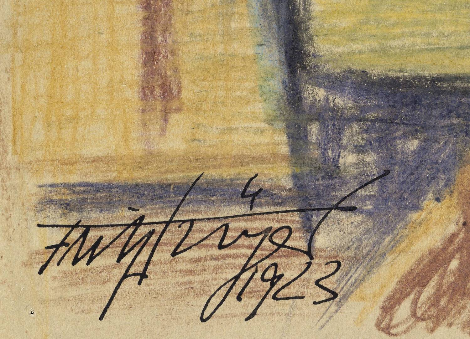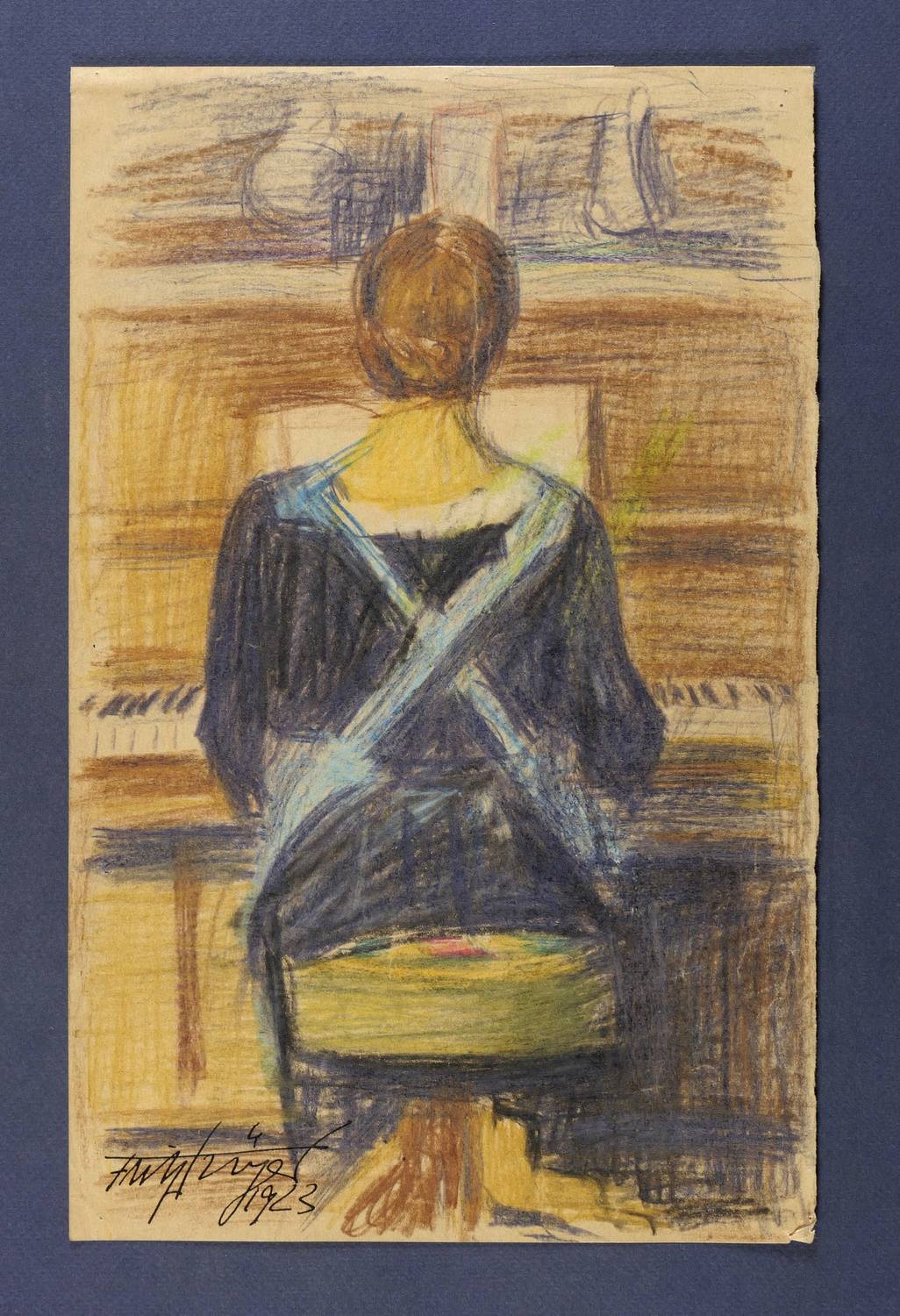 1923. Zeichnung / Farbstiftzeichnung, auf glattem gelblichem Papier. – Originale Künstlergrafik, von Fritz Tröger. – Unikat. – 32,9 x 21,0 cm (Darstellung / Blatt).