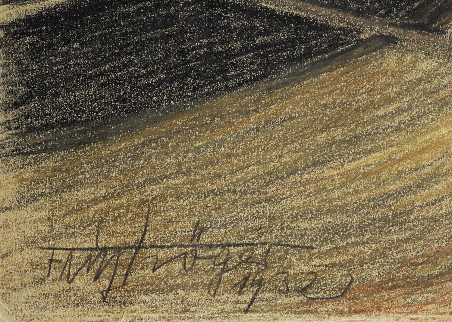 1932. Zeichnung / Ölkreide, auf hellbraunem Zeichenkarton. – Originale Künstlergrafik, von Fritz Tröger. – Unikat. – 65,6 x 46,6 cm (Darstellung / Blatt).