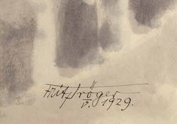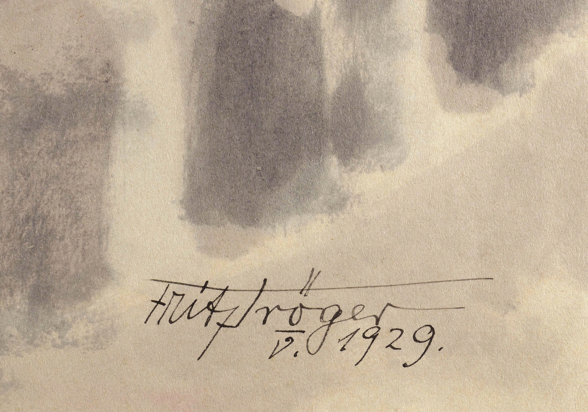 Rechts unten in schwarzer Feder signiert und datiert: ″Fritz Tröger / V. 1929.″ Verso ausführlich bezeichnet. Dazu in Bleistift Qualitätssigel: ″XXXO″. – Verso leichte Montagereste. Minimale Randmängel. Insgesamt guter Zustand.