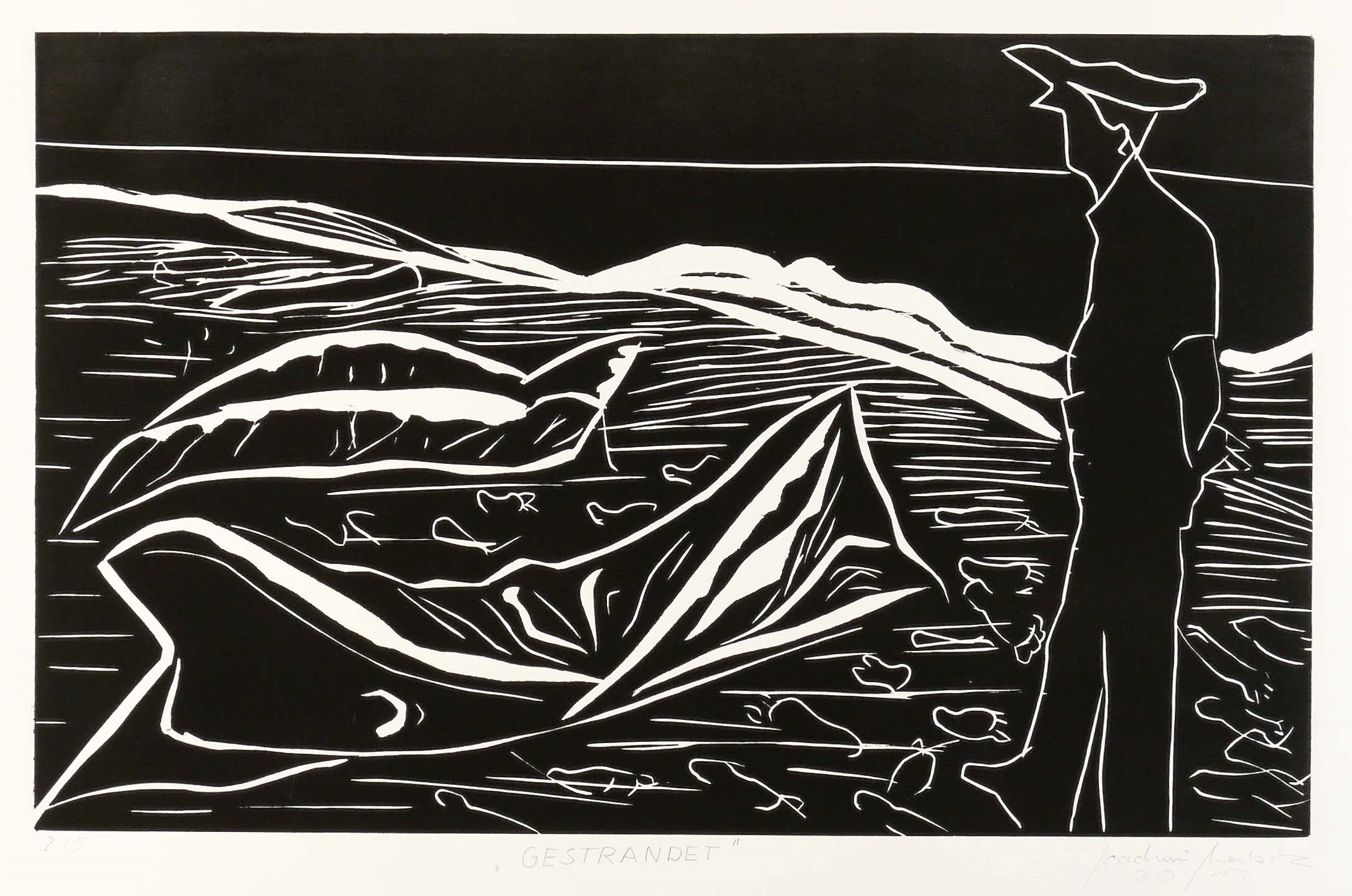2017. Zinkschnitt, in Schwarz, auf weißlichem Büttenkarton. – Von Joachim Merbitz. – Auflage Exemplar Nr. 2/5. – 49,9 x 80,0 cm (Darstellung / Platte), 70 x 100 cm (Blatt).