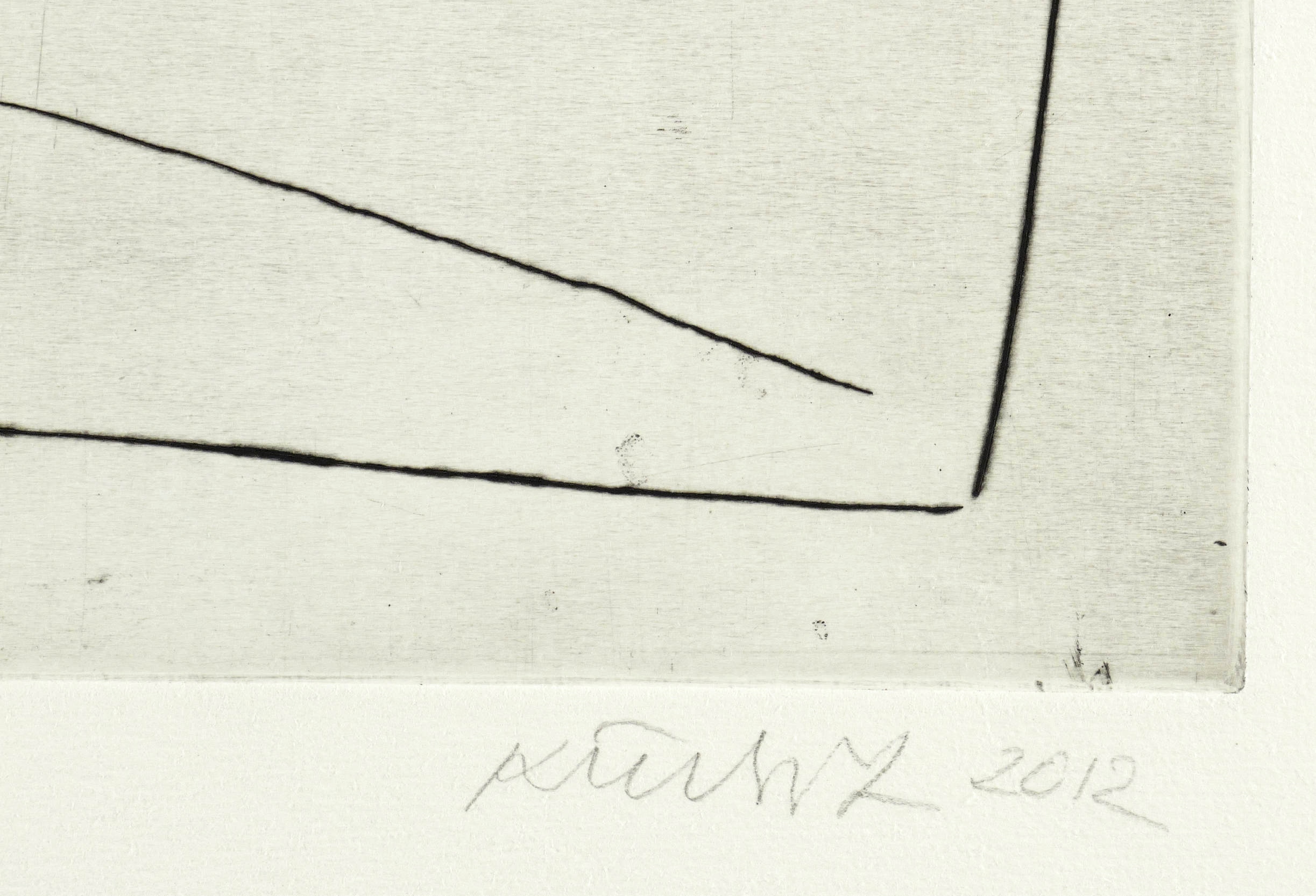 2012. Radierung / Kaltnadel, mit Plattenton, in Schwarz, auf hellchamois Velinkarton. – Von Rolf Kuhrt. – Auflage Exemplar Nr. 3/5. – 49,8 x 64,5 cm (Darstellung / Platte), 58 x 72 cm (Blatt).