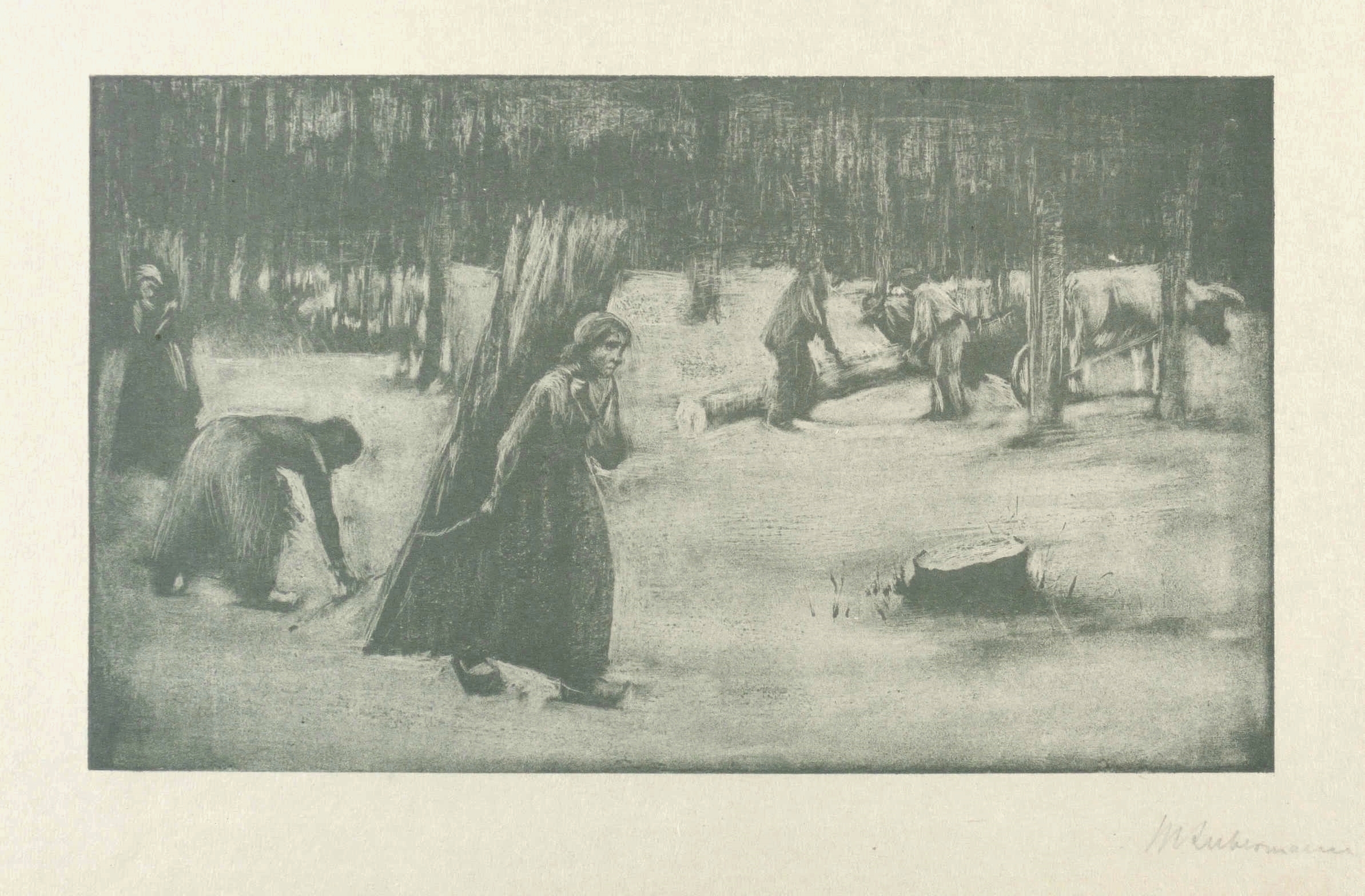1899. Lithografie / Pinsellithografie, geschabt, in Blaugrau, auf hellgelbem Japan. – Originale Künstlergrafik, von Max Liebermann. – 17,3 x 29,3 cm (Darstellung / Druckbild), 33 x 48 cm (Blatt).