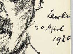 Schwarz L 409. Söhn HDO 108-1. – Aus: Kurt Pfister, Deutsche Graphiker der Gegenwart (Leipzig: Klinkhardt & Biermann 1920). – Nicht handsigniert. Im Stein rechts unten datiert: ″Berlin 30 April 1920″. Verso typografisch bezeichnet: ″CORINTH: Selbstbildnis. Originallithographie″. Dazu in Bleistift nummeriert. – Erschienen in einer Auflage von 100 Exemplaren als originalgrafische Beilage zu ″Deutsche Graphiker der Gegenwart″ von Kurt Pfister (1920). – Sehr guter Zustand.
