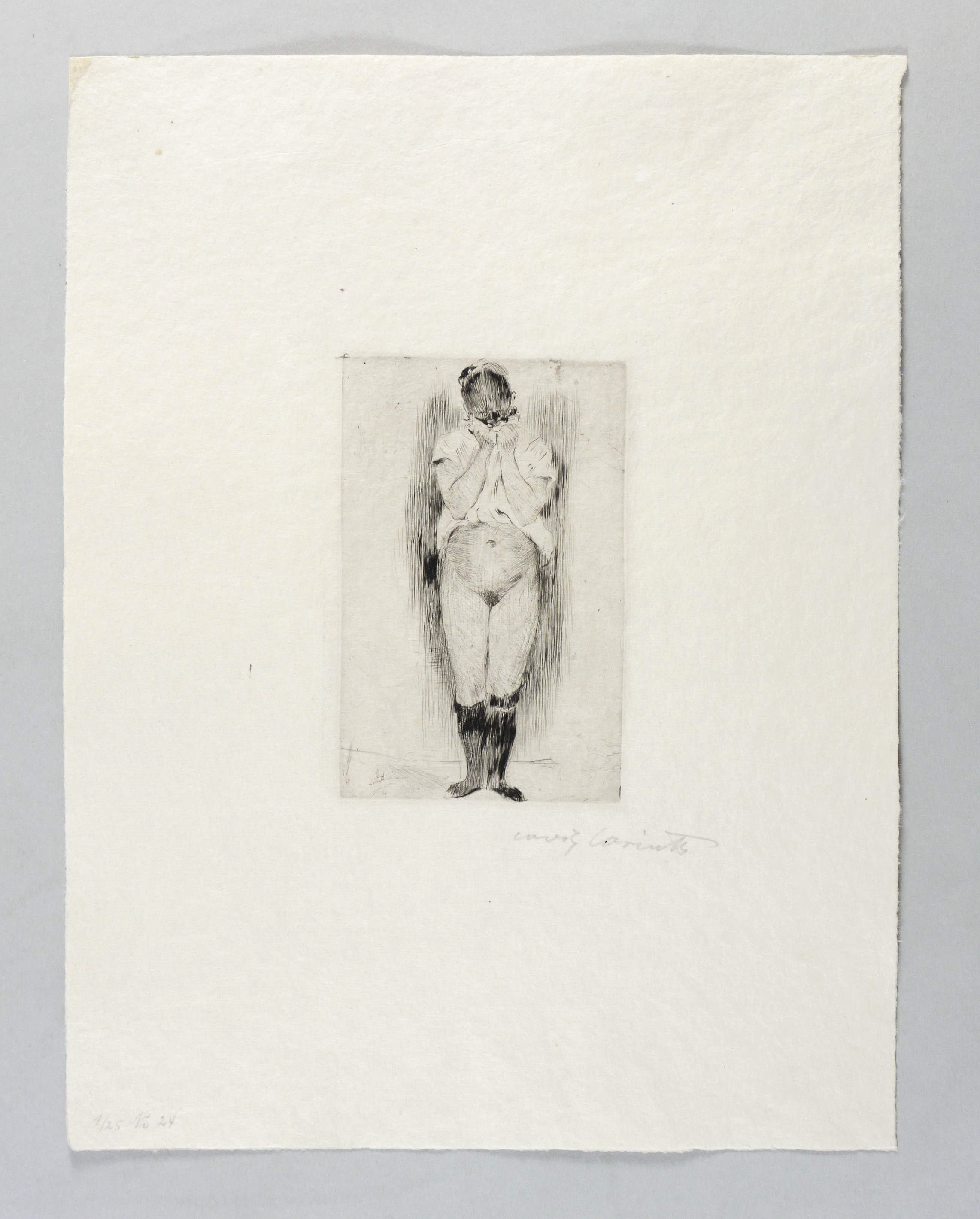 Schwarz 20. – Rechts unten in Bleistift signiert: ″Lovis Corinth″. In der Blattecke links unten Auflagenbezeichnung: ″1/25 No. 24″. Verso Sammlernotizen. – Verlegt bei Bruno Cassirer. - Seltenes Blatt. – Schönes breitrandiges Exemplar. Gratiges und nuancenreiches Druckbild. Tadellos. Sehr guter Erhaltungszustand.
