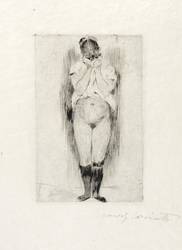 1899. Radierung / Kaltnadel & Roulette, in Schwarz, auf hellchamois kaiserlich Japan. – Von Lovis Corinth. – Auflage Exemplar Nr. 1/25. – 15,1 x 10,0 cm (Darstellung / Platte), 35 x 27 cm (Blatt).