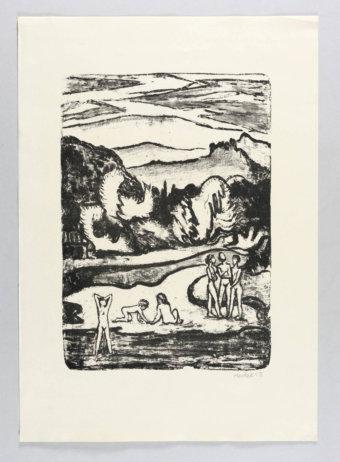 Dube 354 III (von III). – Rechts unten in Bleistift signiert und datiert: ″Heckel 52″. – Edition für die Griffelkunst-Vereinigung, Hamburg. – Originalrandiges Exemplar. Unscheinbare im äußeren Rand. Rückseitig im Rand leicht angeschmutzt. Insgesamt gefälliges Erscheinungsbild. Guter Erhaltungszustand.