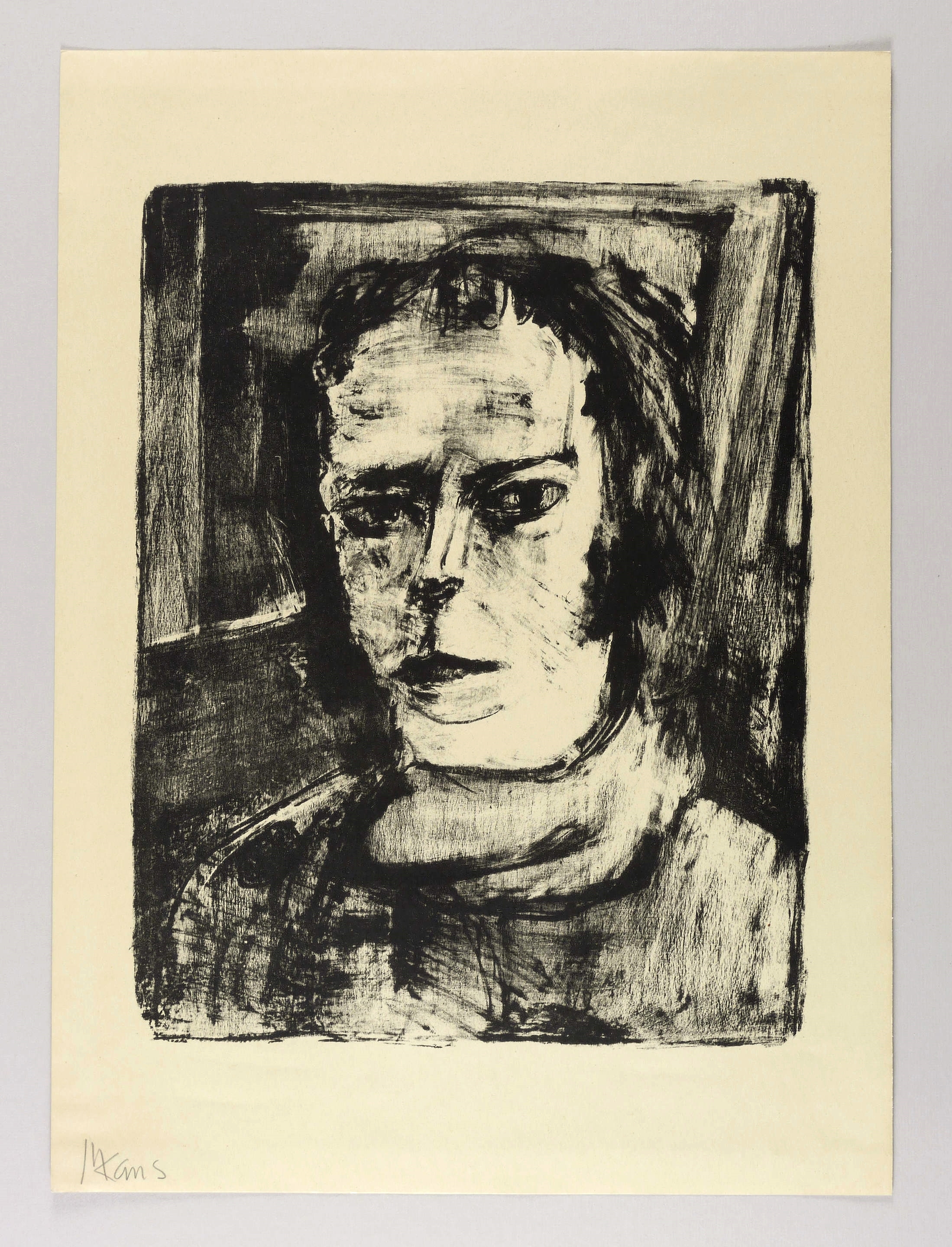 Söhn HDO 71303-1. Krause L 1923/1 b. – Aus: Max Kaus, Akte und Köpfe. Kestner-Mappe III (Hannover: Ludwig Ey 1923). – Links unten in Bleistift signiert: ″MKaus″. Verso Auflagenbezeichnung. – Ohne Mängel. Tadellos erhalten. Sehr guter Zustand.