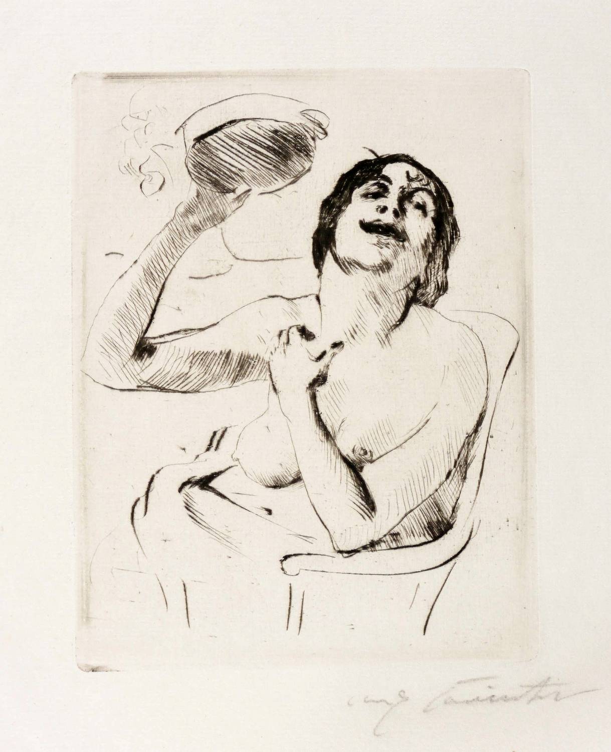 Schwarz 151 I (von IV). – Rechts unten in Bleistift signiert: ″Lovis Corinth″. Oben angeschnittenes Wasserzeichen der Papiermühle. – Mit den Schärfen der frisch abgezogenen Kaltnadel. – Originalrandiges Exemplar. Schön erhalten. Die Bleistiftsignatur leicht gewischt. Guter Zustand.