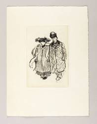 1906. Heliogravure / Heliogravüre, in Schwarz, auf stärkerem gelblichem Velin. – Originale Künstlergrafik, von Heinrich Zille. – Probedruck. – 18,3 x 12,4 cm (Darstellung / Platte), 33 x 24 cm (Blatt).