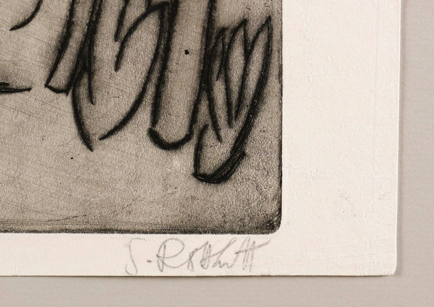 1920. Radierung / Kaltnadel & Schmirgel, in Schwarz, mit Plattenton, auf weichem gelbem Velinkarton. – Originale Künstlergrafik, von Karl Schmidt-Rottluff. – 33,1 x 39,5 cm (Darstellung / Platte), 37 x 48 cm (Blatt).