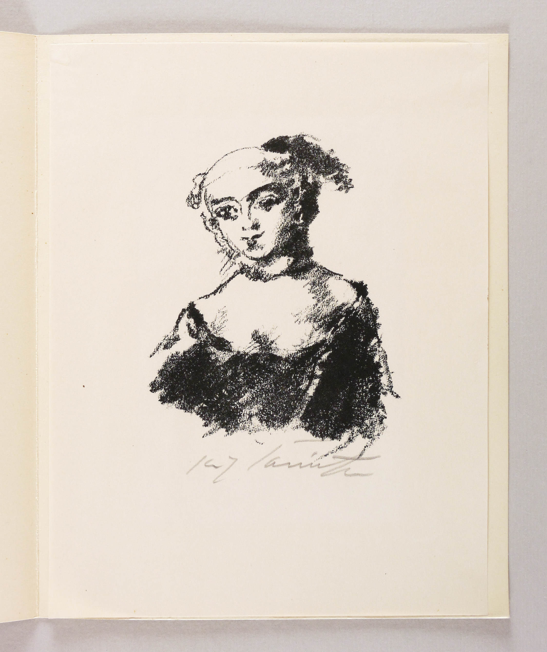 1922/1935. Lithografie / Kreidelithografie, in Schwarz, auf glattem hellgelbem Maschinenpapier. – Originale Künstlergrafik, von Lovis Corinth. – 16,0 x 12,4 cm (Darstellung), 27,9 x 21,5 cm (Blatt), 29 x 23 cm (Passepartout).