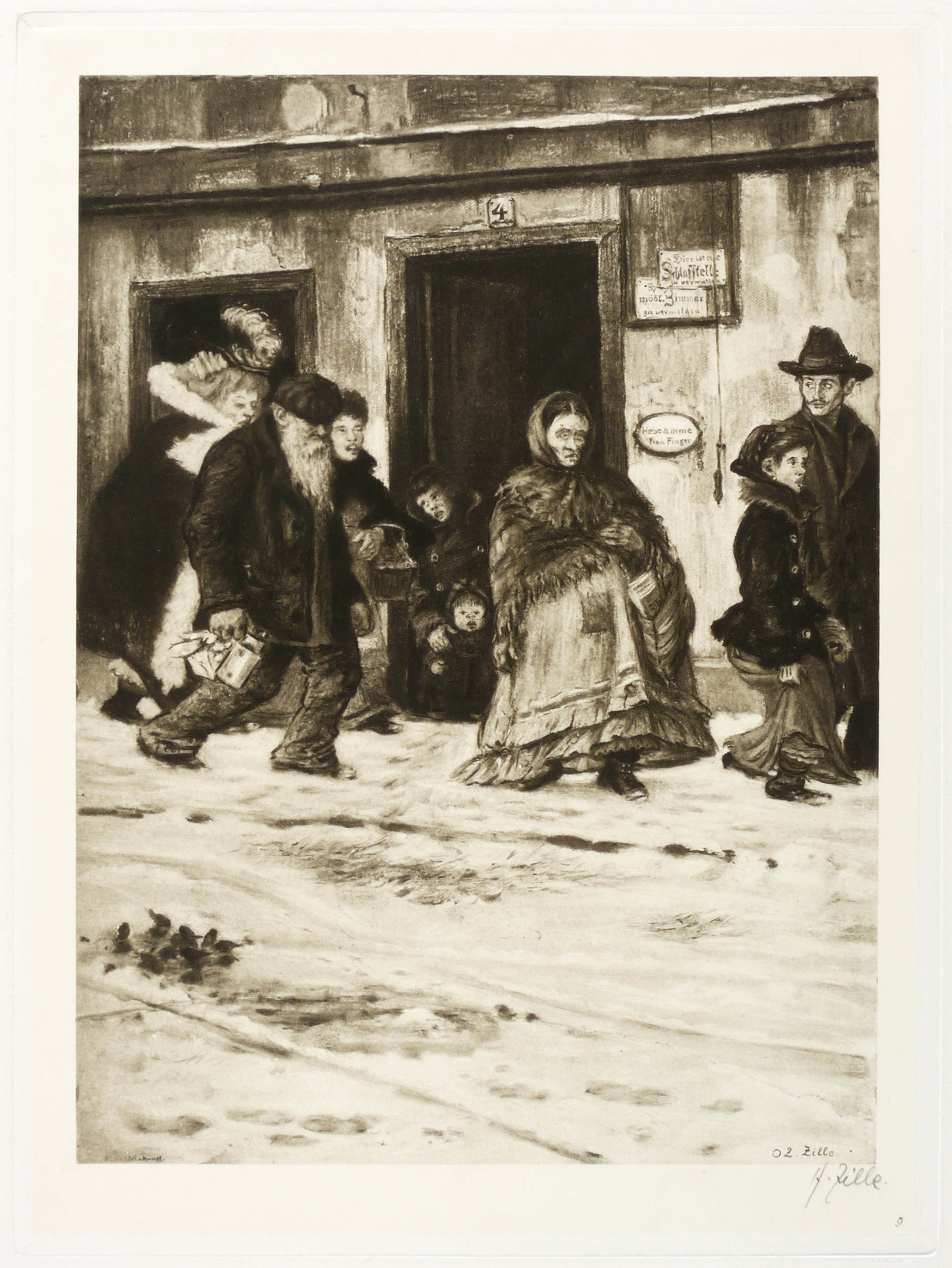 Rosenbach 28 b (von d). – Aus: Heinrich Zille, Zwölf Künstlerdrucke (Berlin: Moritz Lilienthal Verlag 1909). – Rechts unten in Bleistift signiert: ″H. Zille.″ In der Platte links unten Jahr und Signatur: ″02 Zille″. Rechts unten die Blatt-Nr. der Mappen-Auflage: ″9″. – Exemplar aus der Auflage von geschätzt 100 Exemplaren für die 1909 bei Moritz Lilienthal in Berlin erschienenen Mappe ″Zwölf Künstlerdrucke″. – Ohne Mängel. Sehr guter Zustand.