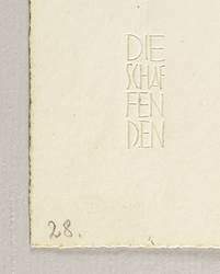 Karsch 114 II c. Jahn-Berger 86. – Aus: Die Schaffenden (Berlin: Gustav Kiepenheuer Verlag 1921), Bd. 3. – Rechts unten in Bleistift signiert: ″Otto Mueller″. Links unten Trockenstempel: ″DIE SCHAFFENDEN″. In der Blattecke links unten in Bleistift nummeriert: ″28.″ Rechts weiter: ″III″. – Dieser zweite Zustand der Lithografie erschien als originalgrafische Beilage in der von Paul Westheim herausgegebenen Mappe ″Die Schaffenden″ (1921, 3. Jahrgang, 1. Mappe; dort betitelt: Polen). – Das Motiv geht zurück auf das Leinwandgemälde ″Polnische Familie″ von 1919 (WVZ 201, Essen). – Provenienz: Privatsammlung Nordrhein-Westfalen. – Papier und Farben tadellos. Originalrandiges unbeschnittenes Exemplar. Hervorragend erhalten. Sehr guter Zustand.