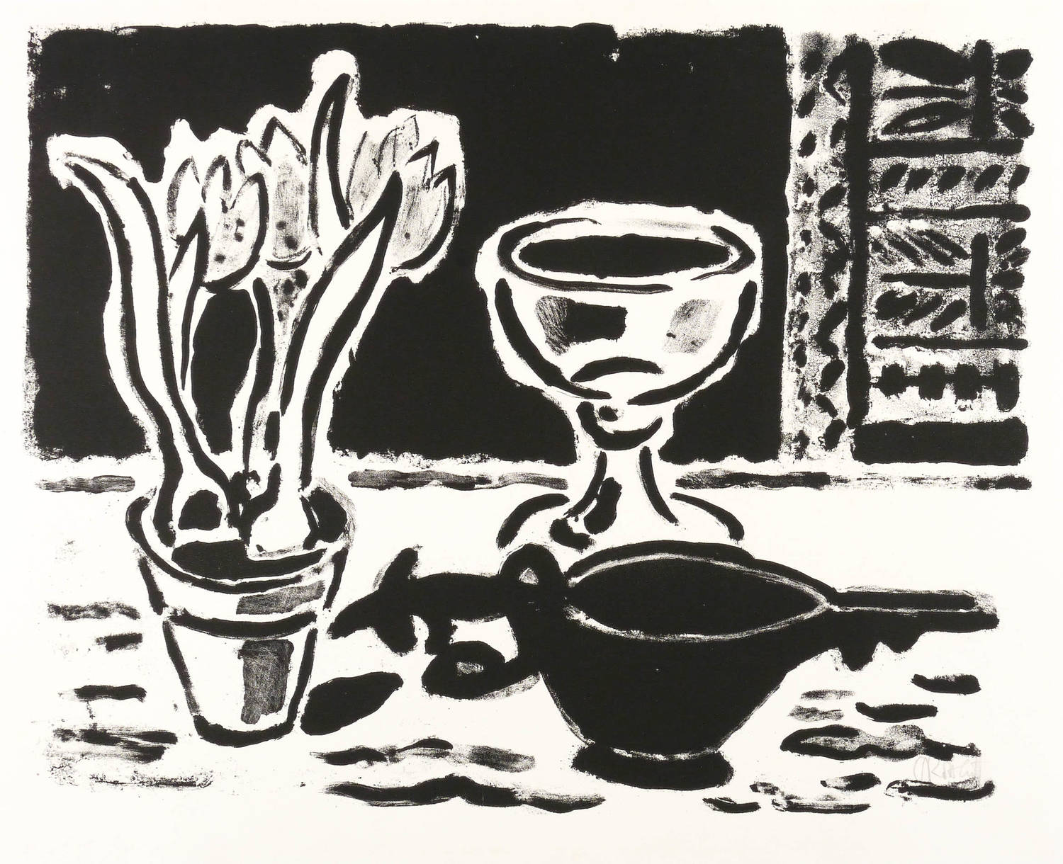 1954. Lithografie / Pinsellithografie, in Schwarz, auf weichem weißlichem Velin. – Originale Künstlergrafik, von Karl Schmidt-Rottluff. – Auflage 250 Exemplare. – 44,3 x 56,3 cm (Darstellung / Druckstock), 55 x 76 cm (Blatt).