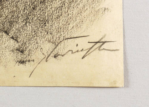 Rechts unten in Bleistift signiert: ″Corinth″. – Vergleichbar mit der ebenfalls in fettiger lithografischer Kreide gearbeiteten Zeichnung ″Friedrich der Große auf dem Totenbett″ in der Sammlung der Kunsthalle Bremen (1921, 32 x 25 cm). – Papier oberflächlich minimal fleckig. Rückseitig unscheinbare Montagespuren. Insgesamt guter Zustand.