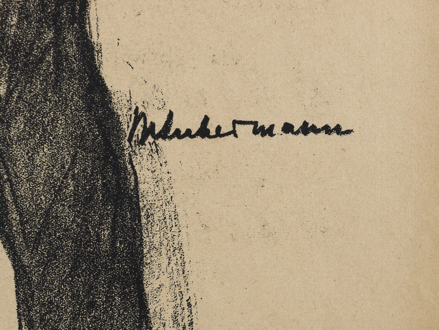 Schiefler 190 b (von b). – Aus: Kriegszeit. Künstlerflugblätter (Berlin: Paul Cassirer & Alfred Gold 1914-1916). – Nicht handsigniert. Im Stein rechts signiert: ″MLiebermann″. Links unten Inschrift: ″Unsre blauen Jungen″. – Dazu vollständige Ausgabe des Heftes Nr. 13 der ″Kriegszeit″ mit Lithografien u.a. von Otto Hettner und August Gaul. – Papier altersbedingt deutlich gegilbt. Gut erhalten.