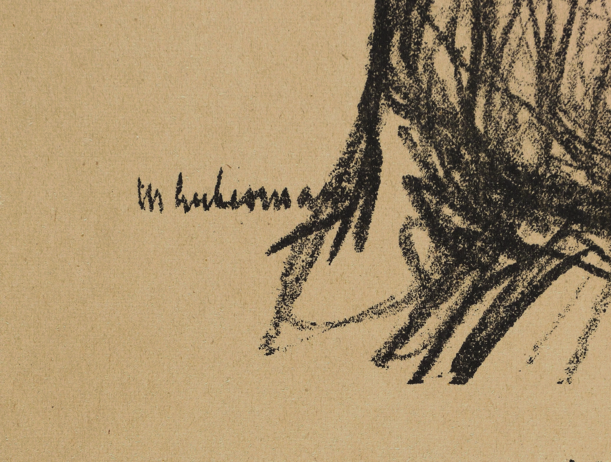 Schiefler 176 b (von b). – Aus: Kriegszeit. Künstlerflugblätter (Berlin: Paul Cassirer & Alfred Gold 1914-1916). – Nicht handsigniert. Im Stein links unten signiert: ″M Liebermann″. Unterhalb Inschrift: ″Wohlauf. Kameraden, aufs Pferd, aufs Pferd″. – Ein Kürassier, der sein unruhiges Pferd besteigt. - Blatt aus der Ausgabe des Heftes Nr. 6 der ″Kriegszeit″ (Sonderausgabe Max- Liebermann-Nummer). Verso mit einer weiteren Lithografie von Liebermann: ″Extrablatt!″ (WVZ Schiefler Nr. 177 b). – Papier altersbedingt deutlich gegilbt. Gut erhalten.