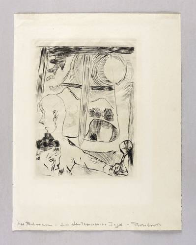 1917. Radierung / Kaltnadel, in Schwarz, auf leichtem gelbem Bütten. – Originale Künstlergrafik, von Max Beckmann. – Auflage 500 Exemplare. – 18,7 x 14,0 cm (Darstellung / Platte), 30 x 23 cm (Blatt).