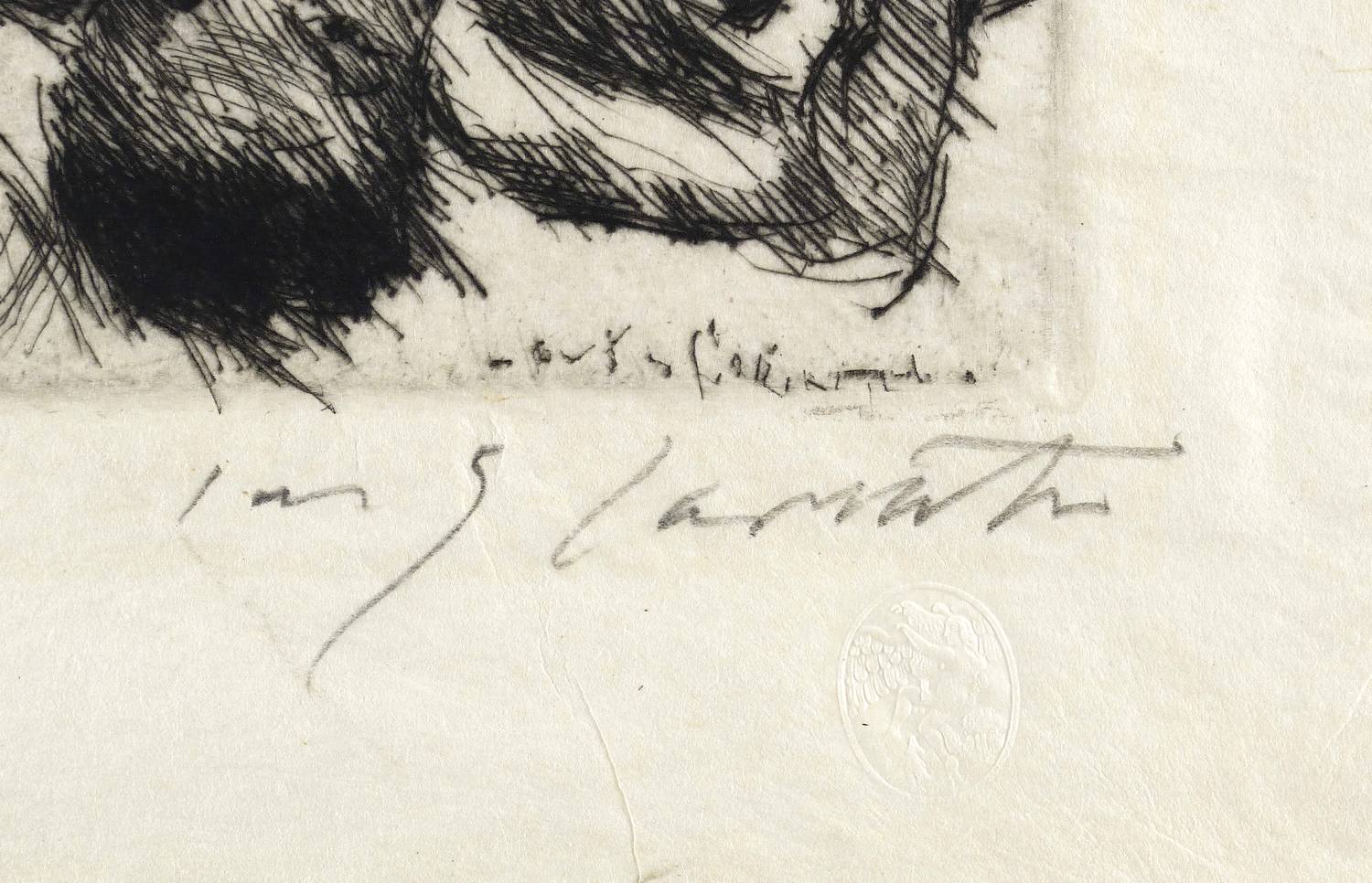 Müller 672. – Rechts unten in Bleistift signiert: ″Lovis Corinth″. Darunter Ganymed- Trockenstempel der Marées-Gesellschaft. – Originalrandiges Exemplar. Das Japan unscheinbar knickspurig. In den oberen Blattecken leichte Montagespuren. Guter Gesamtzustand.