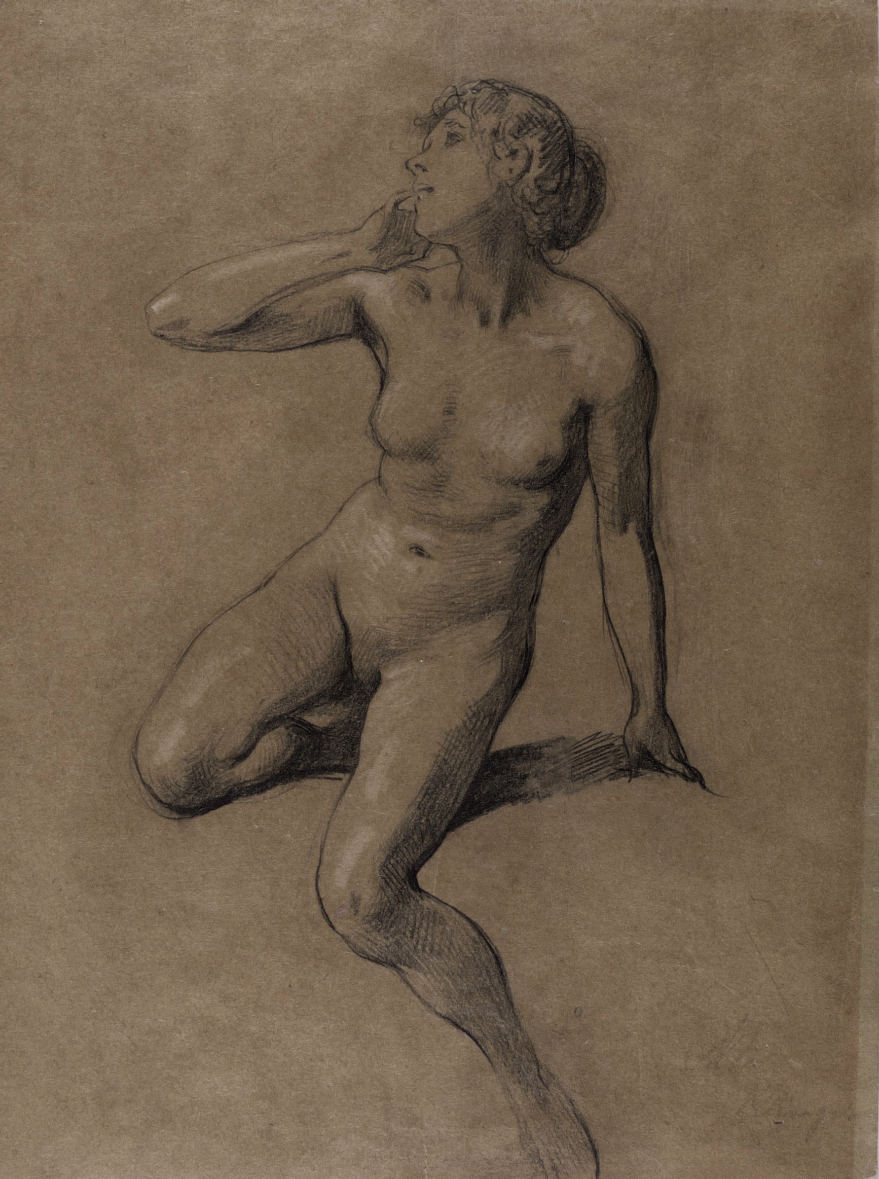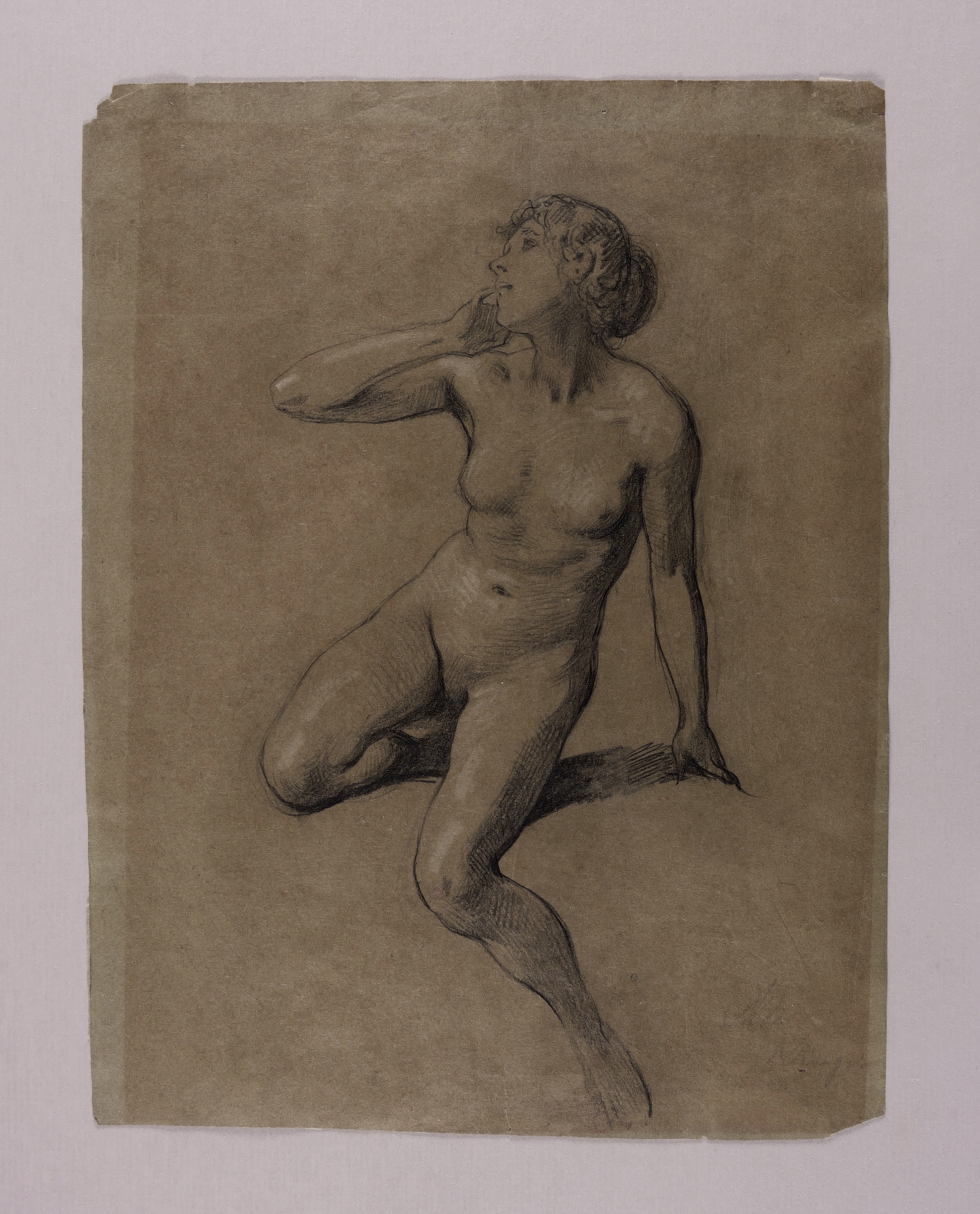 Klinger, Max (Umkreis). – „Kauernder Mädchenakt”.
