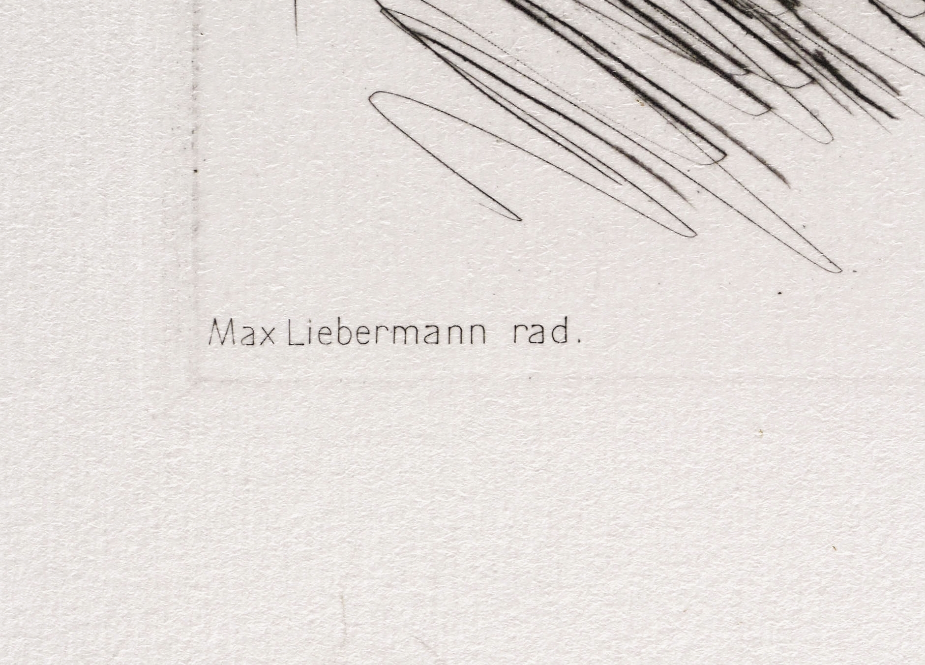 Schiefler 170 VI b. – Aus: Zeitschrift für bildende Kunst (Leipzig: E.A. Seemann 1915), Bd. 26. – Nicht handsigniert. In der Platte links unten gestochene Signatur: ″Max Liebermann rad.″ Rechts davon bezeichnet: ″W. v. Bode // Verlag von E.A. Seemann″. – Sehr guter Zustand.