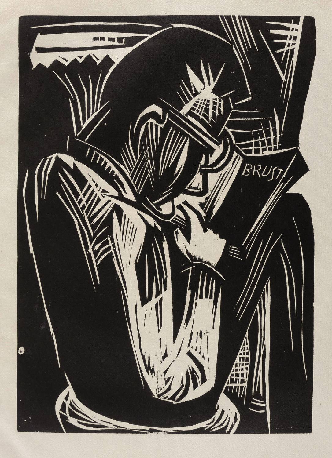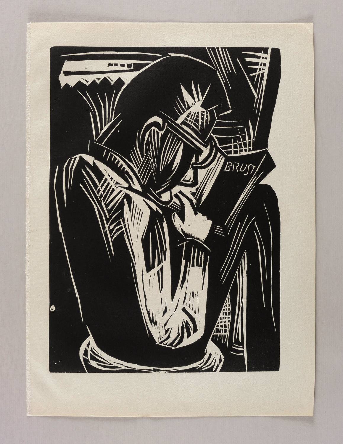Schapire H 274. – Aus: Genius. Zeitschrift für werdende und alte Kunst (München: Kurt Wolff 1921), Bd. 3. – Nicht handsigniert. Im Holzstock auf einer Buchseite die Inschrift: ″BRUST″. Verso typografisch bezeichnet: ″Karl Schmidt-Rottluff / Originalholzschnitt″. – Tadellos erhalten. Im linken Blattrand unscheinbare Bindungsspuren. Papier altersbedingt leicht gegilbt. Sehr guter Zustand.