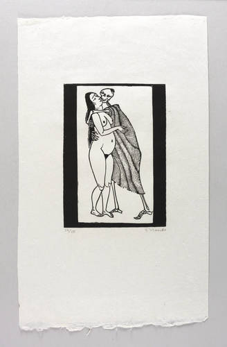 1959. Holzschnitt, in Schwarz, auf feinem hellem Japan. – Originale Künstlergrafik, von Gerhard Marcks. – Auflage Exemplar Nr. 23/50. – 25,6 x 18,3 cm (Darstellung / Druckbild), 56 x 35 cm (Blatt).