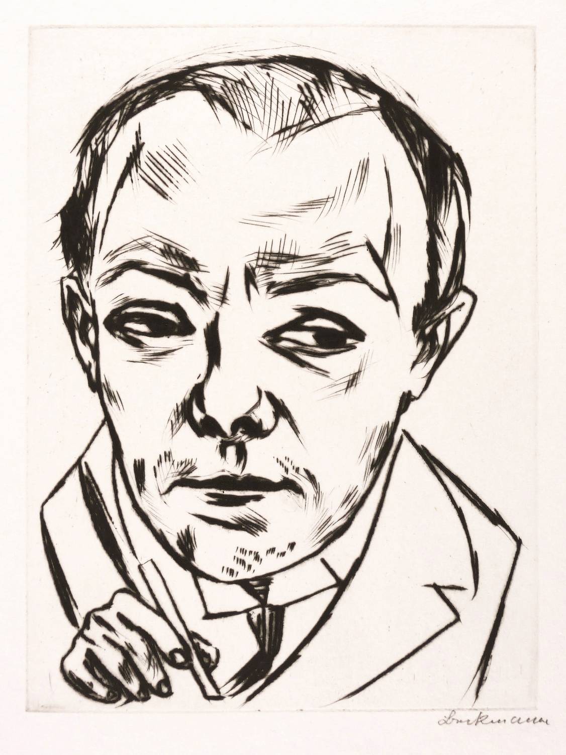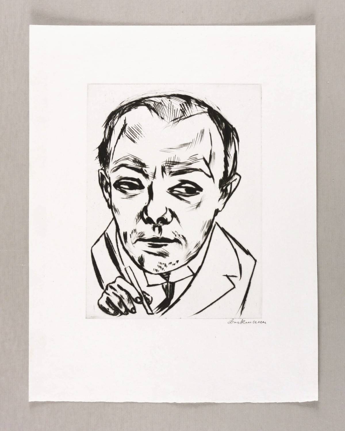 1922. Radierung / Kaltnadel, in Schwarz, ohne Plattenton, auf hartem weißem Velin. – Originale Künstlergrafik, von Max Beckmann. – Auflage 100 Exemplare. – 19,7 x 14,7 cm (Darstellung / Platte), 32 x 24 cm (Blatt).