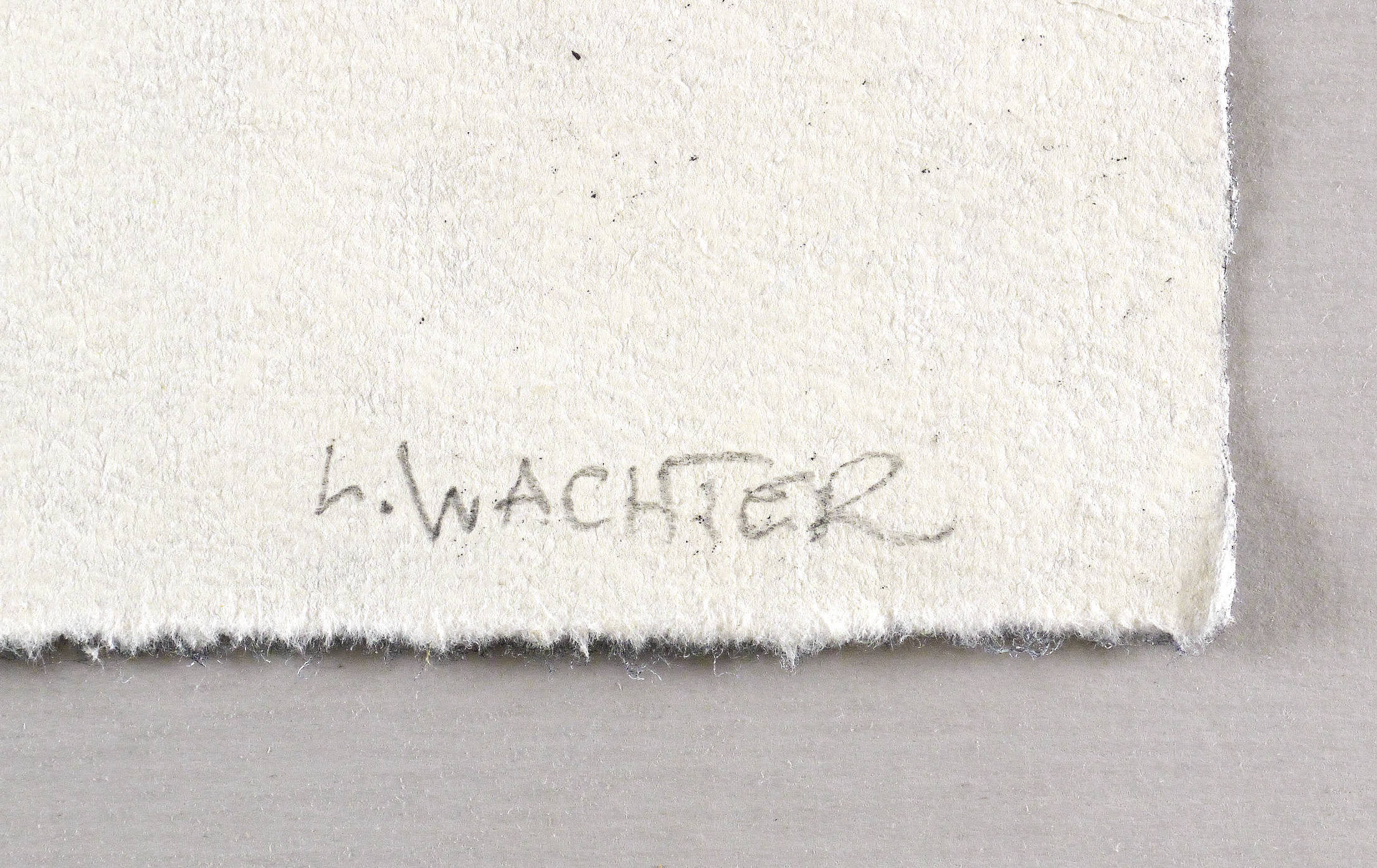 2023. Mischtechnik, teils Pochoir, gespritzt, auf weißem Papier. – Originale Künstlergrafik, von Leonhard Wachter. – Künstlerexemplar (e.a.). – 28,0 x 38,0 cm (Darstellung / Blatt).