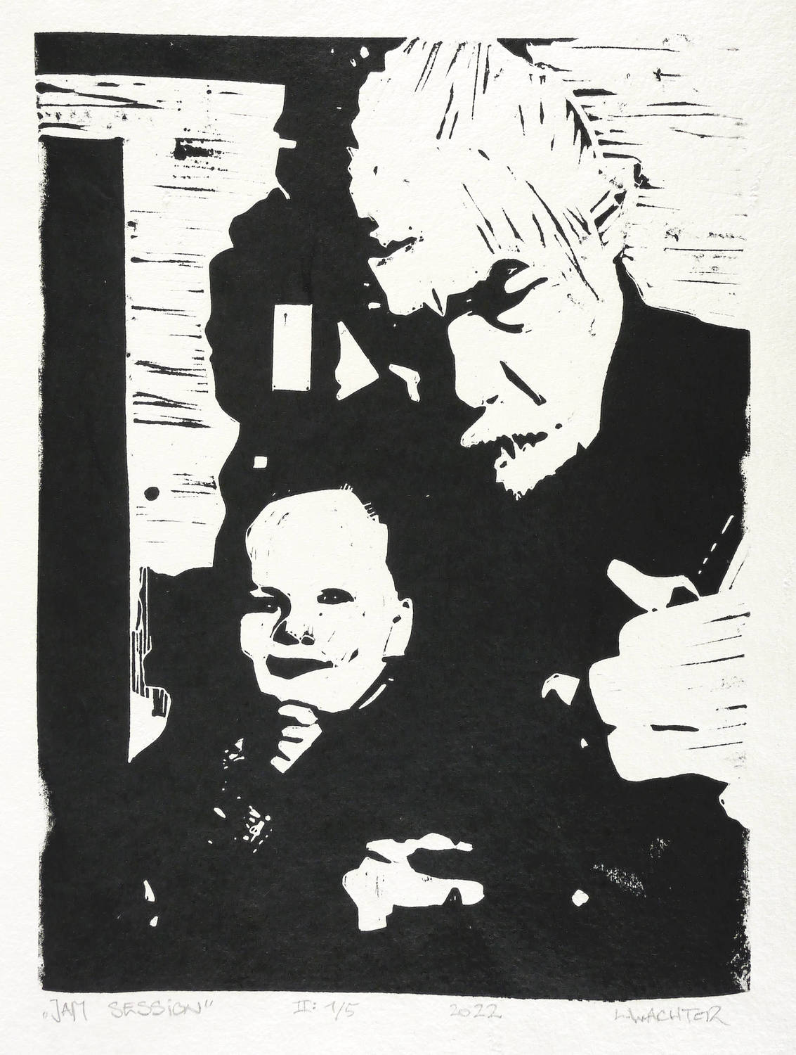 2022. Linolschnitt, in Schwarz, auf Papier. – Originale Künstlergrafik, von Leonhard Wachter. – Auflage Exemplar Nr. 1/5. – 55,5 x 38,5 cm (Darstellung / Blatt).