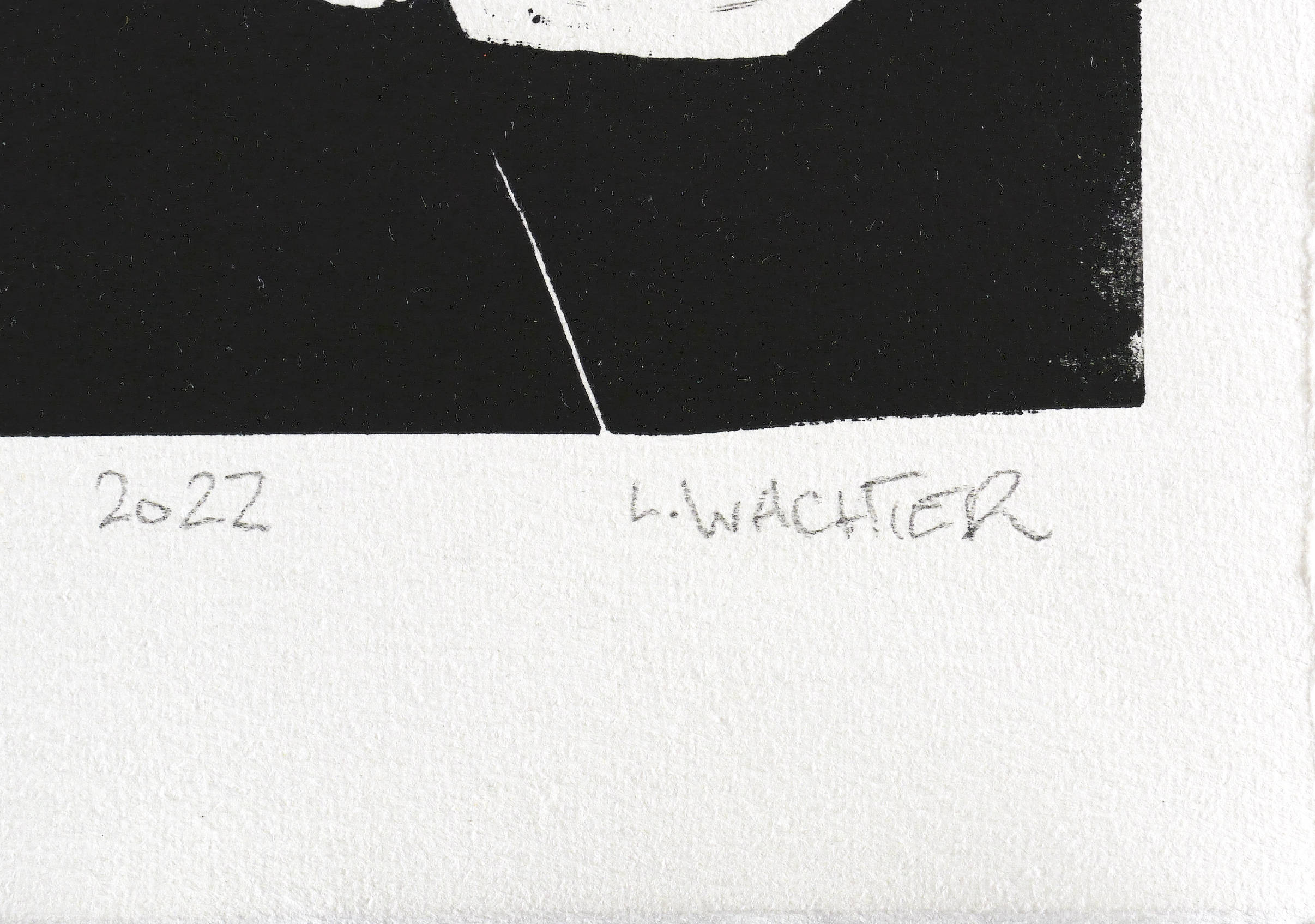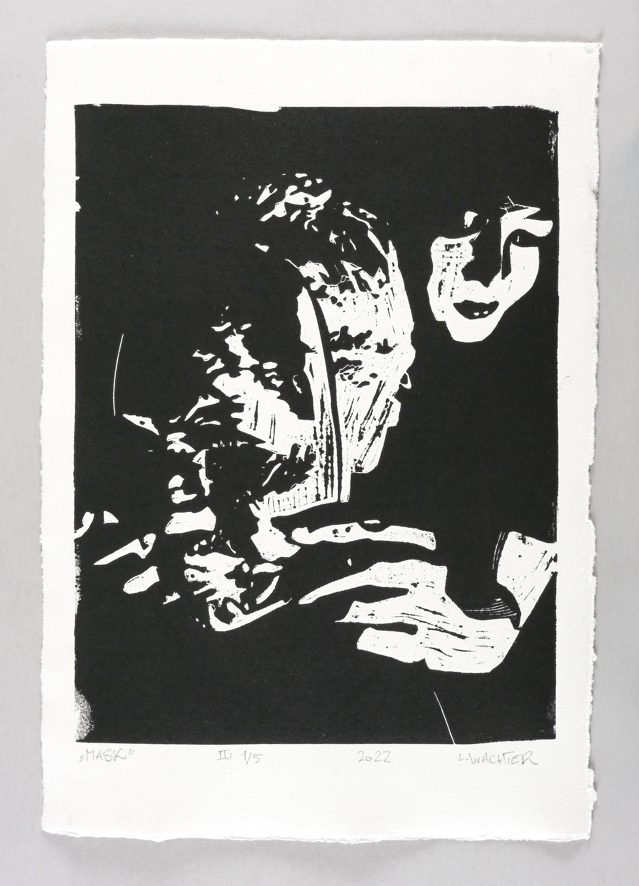2022. Linolschnitt, in Schwarz, auf weißem Velin. – Originale Künstlergrafik, von Leonhard Wachter. – Auflage Exemplar Nr. 1/5. – 50,0 x 35,0 cm (Darstellung / Blatt).