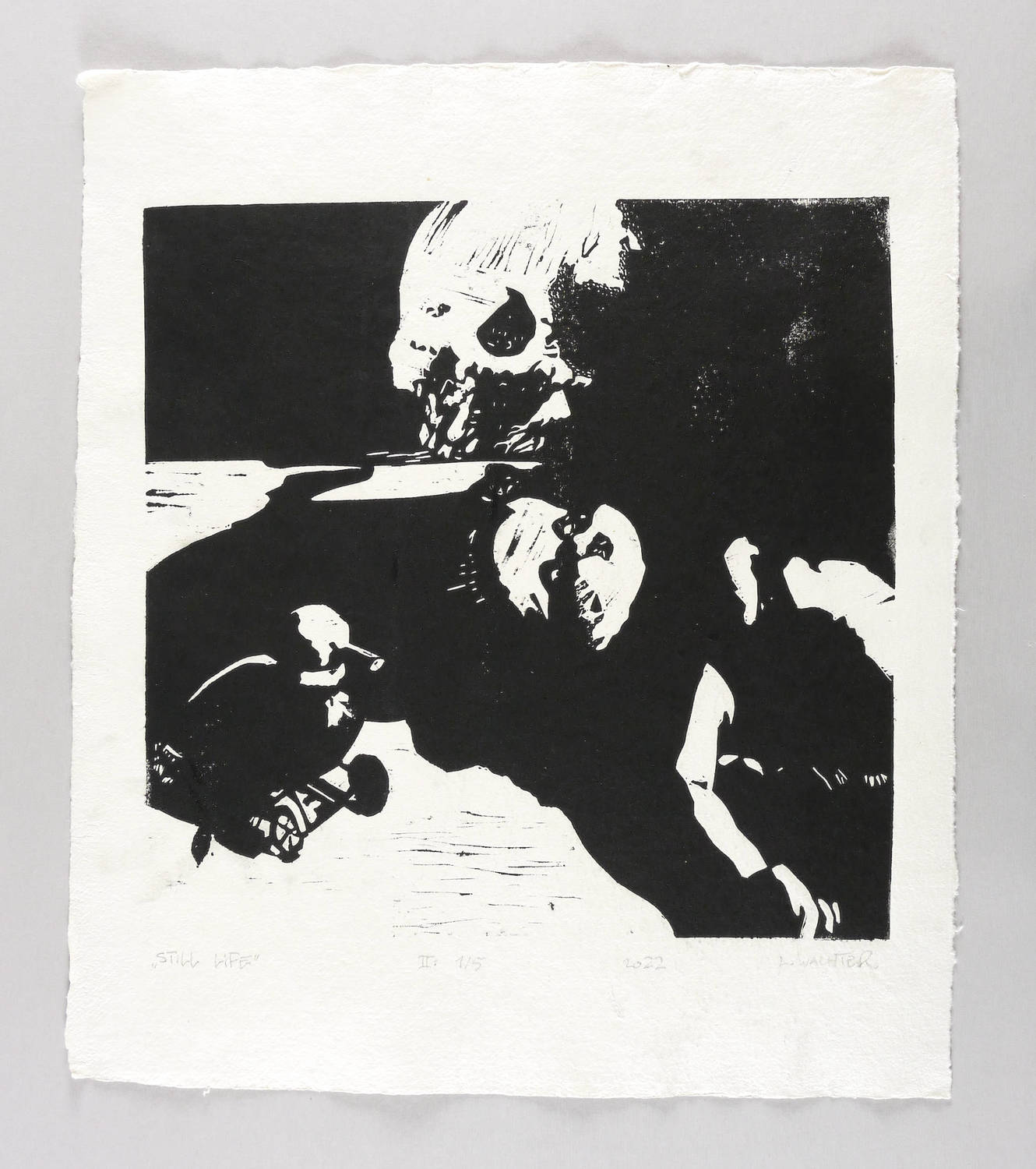 2022. Linolschnitt, in Schwarz, auf Papier. – Originale Künstlergrafik, von Leonhard Wachter. – Auflage Exemplar Nr. 1/5. – 56,0 x 48,0 cm (Darstellung / Blatt).