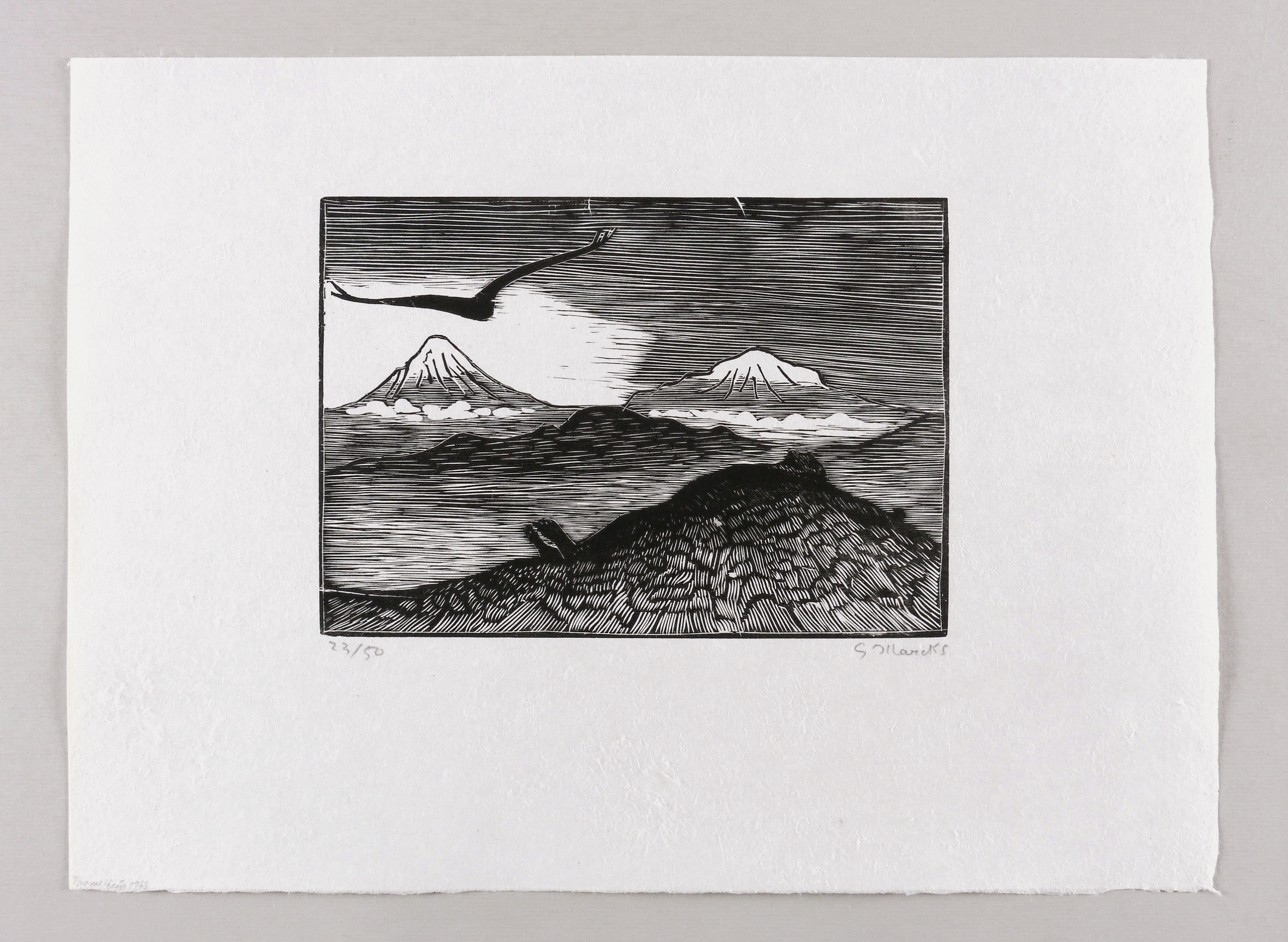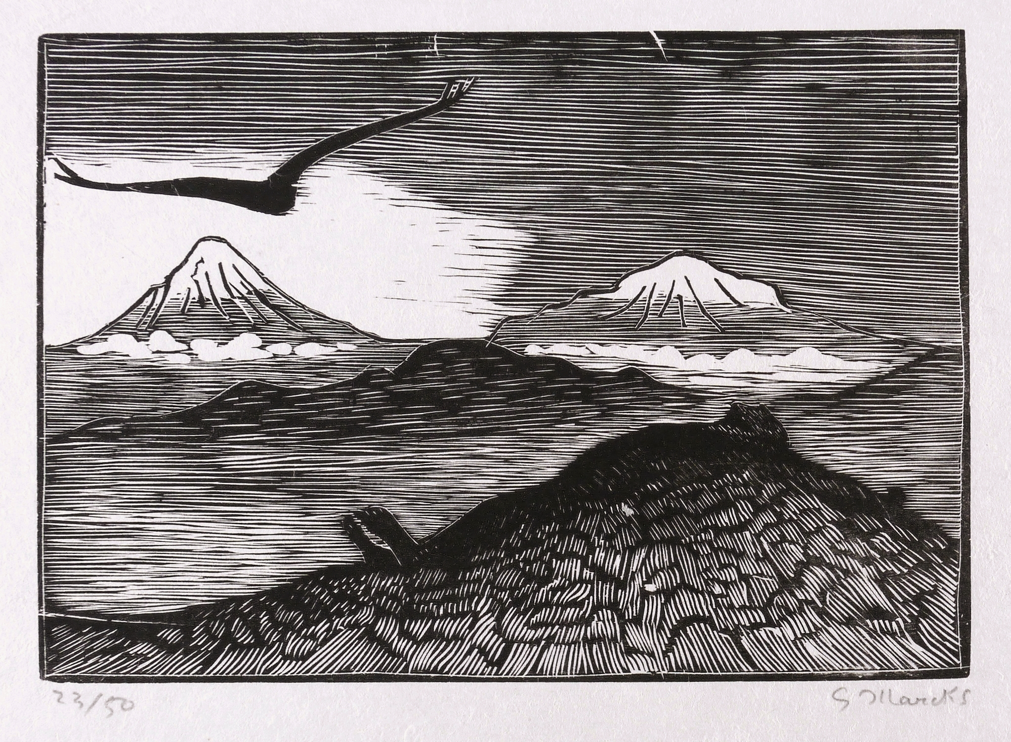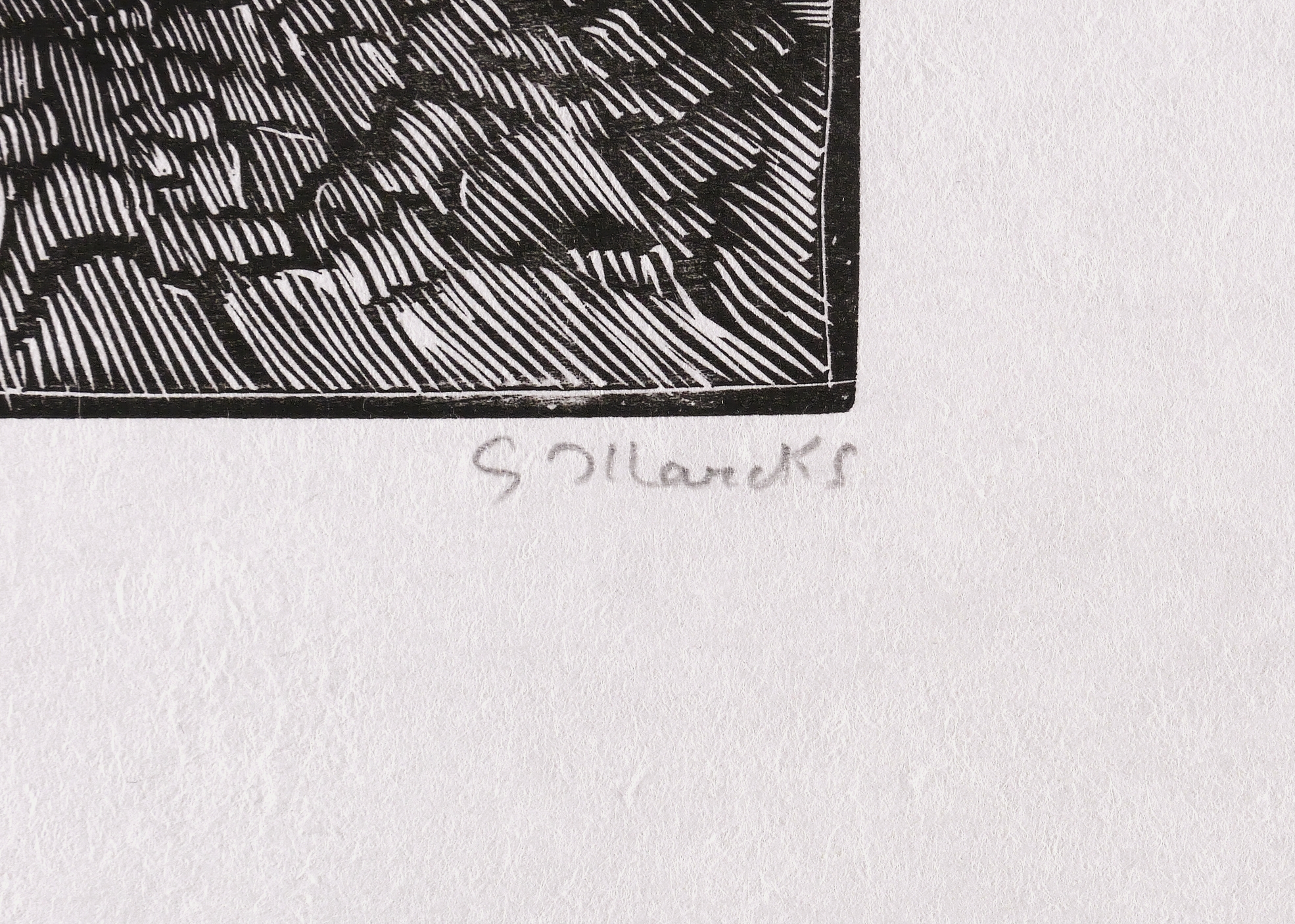 1963. Holzschnitt, in Schwarz, auf festerem weißlichem Japanbütten. – Originale Künstlergrafik, von Gerhard Marcks. – Auflage Exemplar Nr. 23/50. – 18,1 x 25,6 cm (Darstellung / Druckbild), 34 x 47 cm (Blatt).