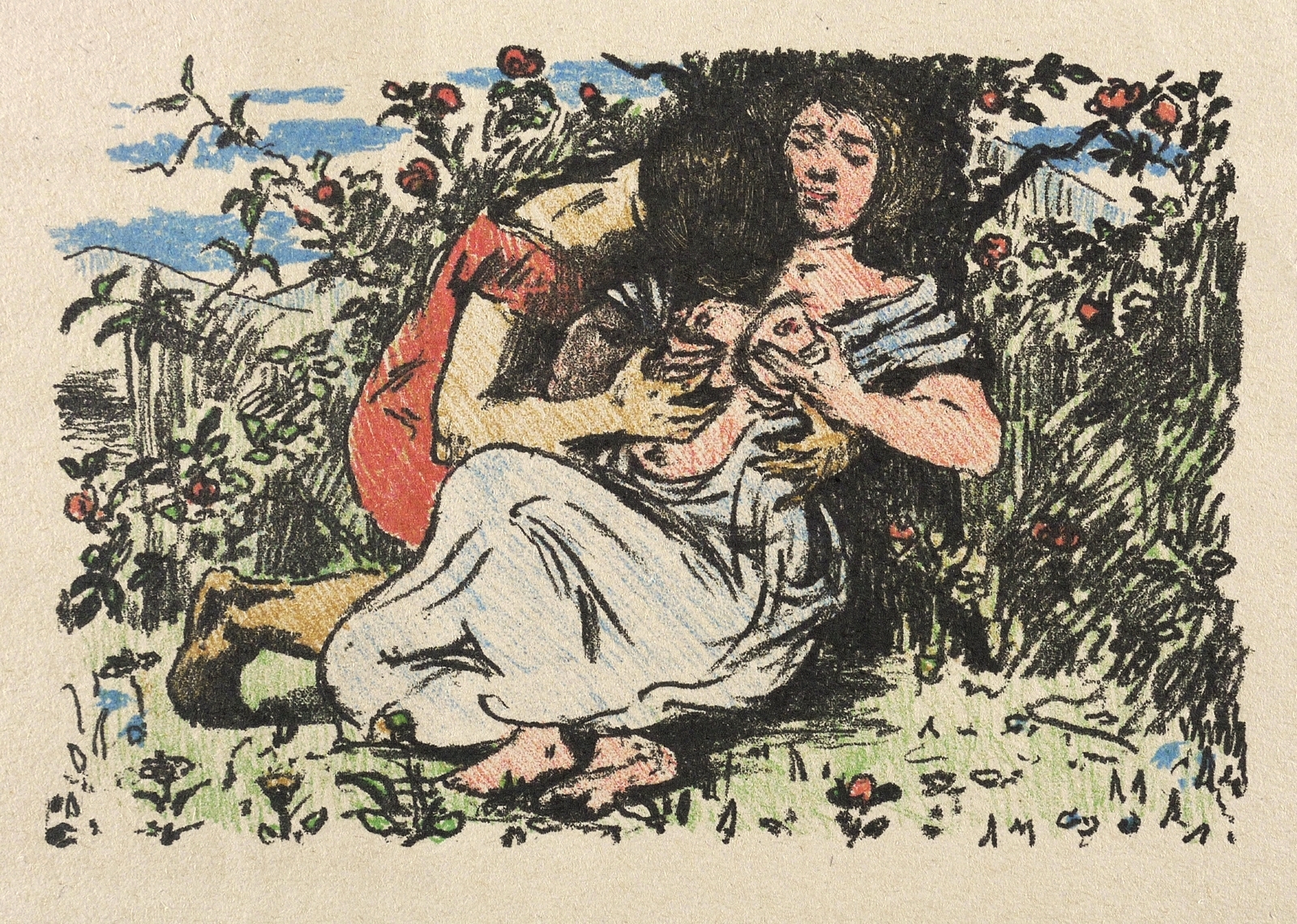 1911. Farblithografie / Kreidelithografie, in 4 Farben, auf graugelbem Velin. – Originale Künstlergrafik, von Lovis Corinth. – 15,4 x 23,0 cm (Darstellung / Druckbild), 25 x 34 cm (Blatt).