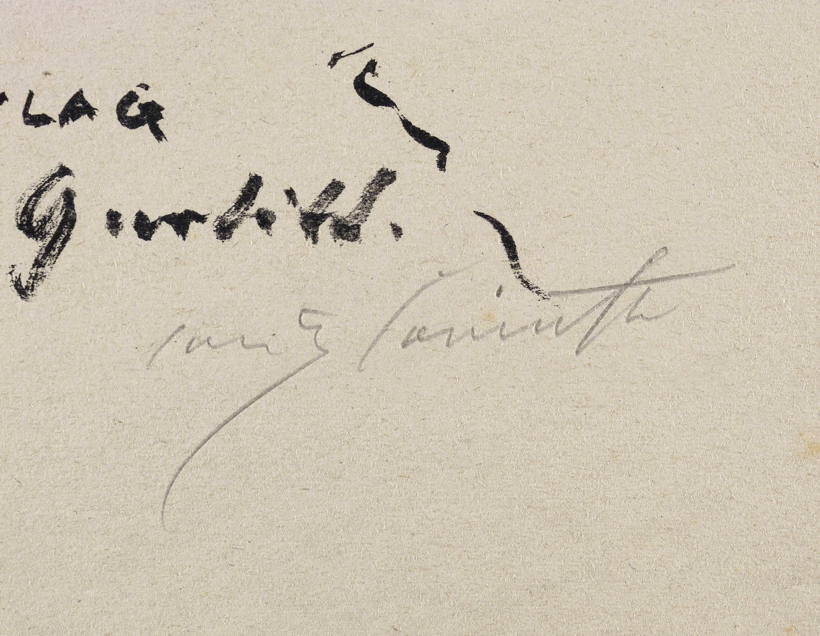 1920. Lithografie / Pinsellithografie, in Schwarz, auf rauem graugelbem Velin. – Originale Künstlergrafik, von Lovis Corinth. – Auflage 40 Exemplare. – 50 x 38 cm (Blatt), 32,0 x 25,2 cm (Darstellung / mit Schrift).