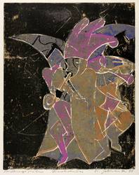 1971. Farblinolschnitt, in 4 Farben, auf hellgelbem Velin. – Von Helmut Gebhardt. – 46,9 x 36,9 cm (Darstellung / Druckbild), 50 x 40 cm (Blatt).