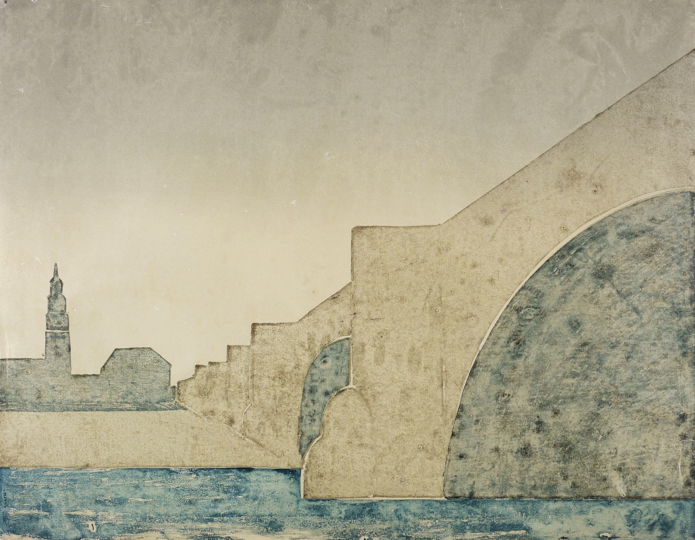 Verso in Bleistift signiert und datiert: ″Helmut Gebhardt 87″. Weiter bezeichnet: ″Dresden (Variante II) Linolschnitt″. Dazu Auflagenbezeichnung: ″2/20″. – Randloser Druck. – Sehr guter Zustand.