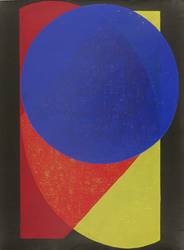 1987. Farblinolschnitt, in 3 Farben, auf schwarz getöntem Bütten. – Originale Künstlergrafik, von Helmut Gebhardt. – Auflage Exemplar Nr. 1/20. – 63,7 x 48,3 cm (Darstellung / Blatt).