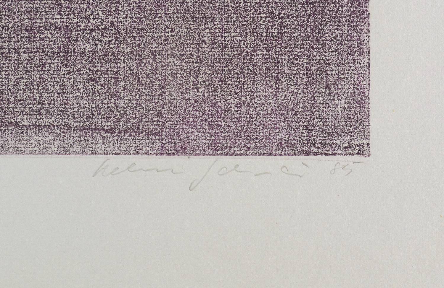 1985. Linolschnitt, in 4 Farben, auf lichtgrau getöntem Bütten. – Originale Künstlergrafik, von Helmut Gebhardt. – Auflage Exemplar Nr. 1/20. – 50,2 x 63,3 cm (Darstellung / Druckbild), 61 x 73 cm (Blatt).