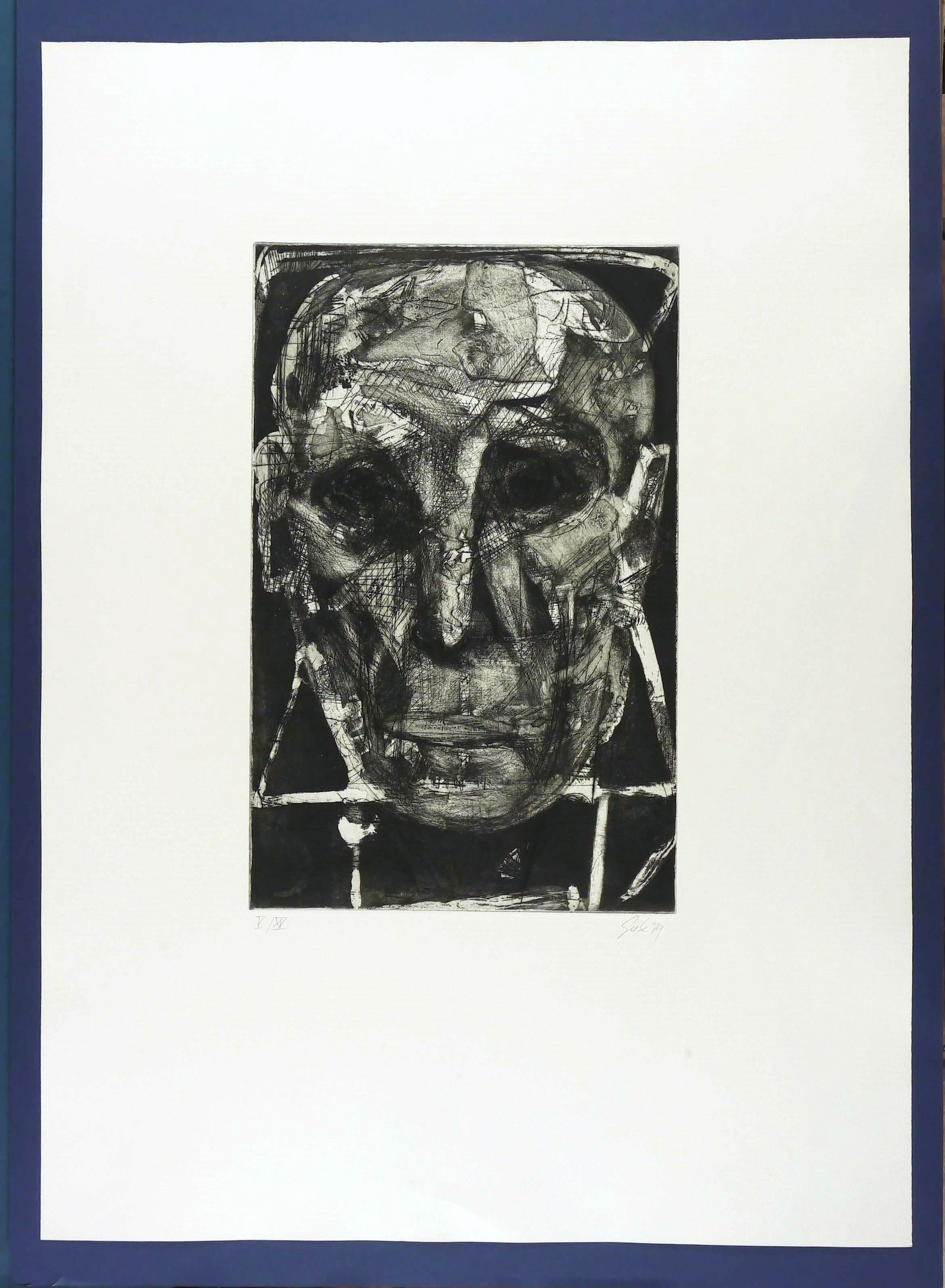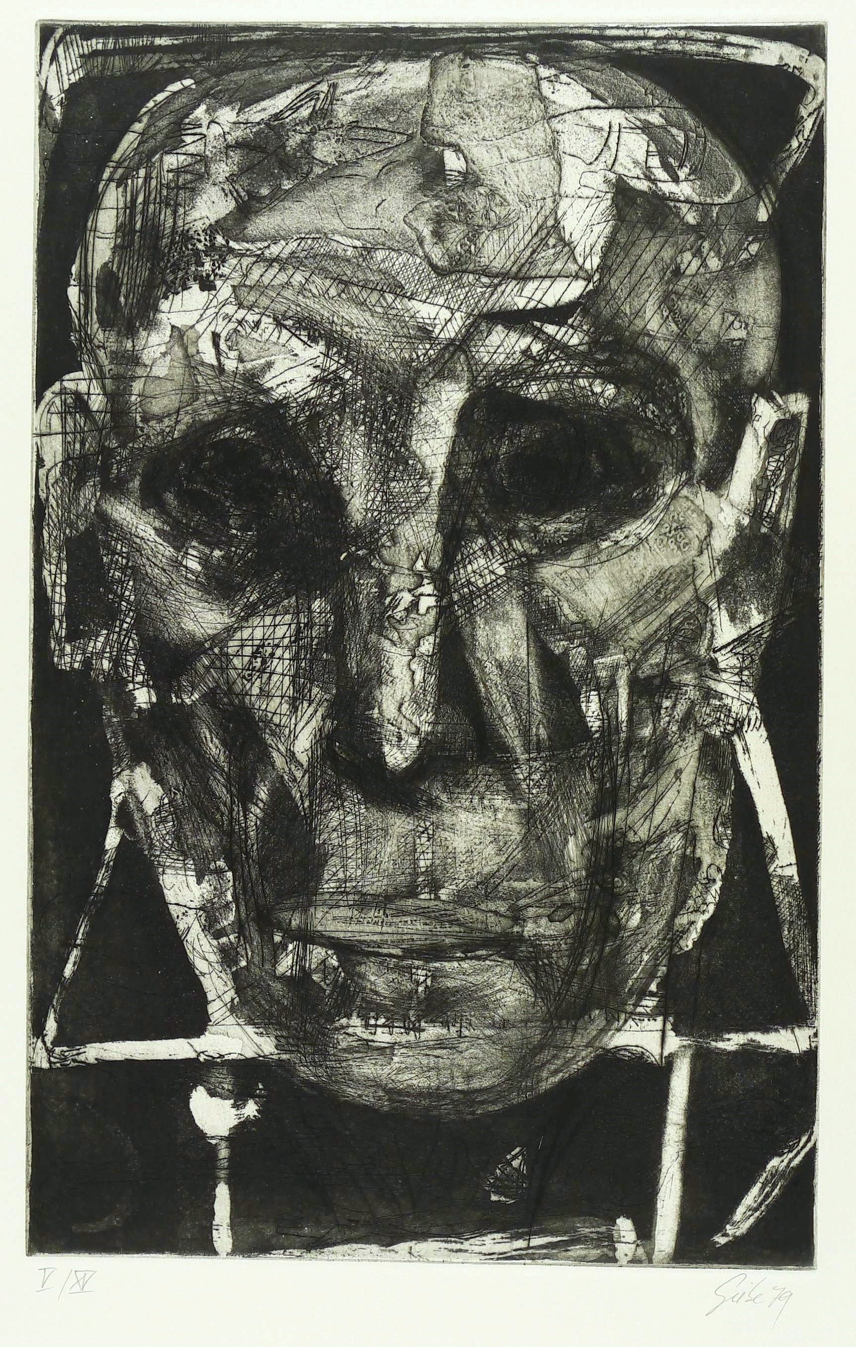 1979. Radierung / Aquatinta & Kaltnadel, in Schwarz, auf hellchamois Velin. – Originale Künstlergrafik, von Hubertus Giebe. – Auflage Exemplar Nr. 5/15. – 49,8 x 32,0 cm (Darstellung / Platte), 90 x 65 cm (Blatt).