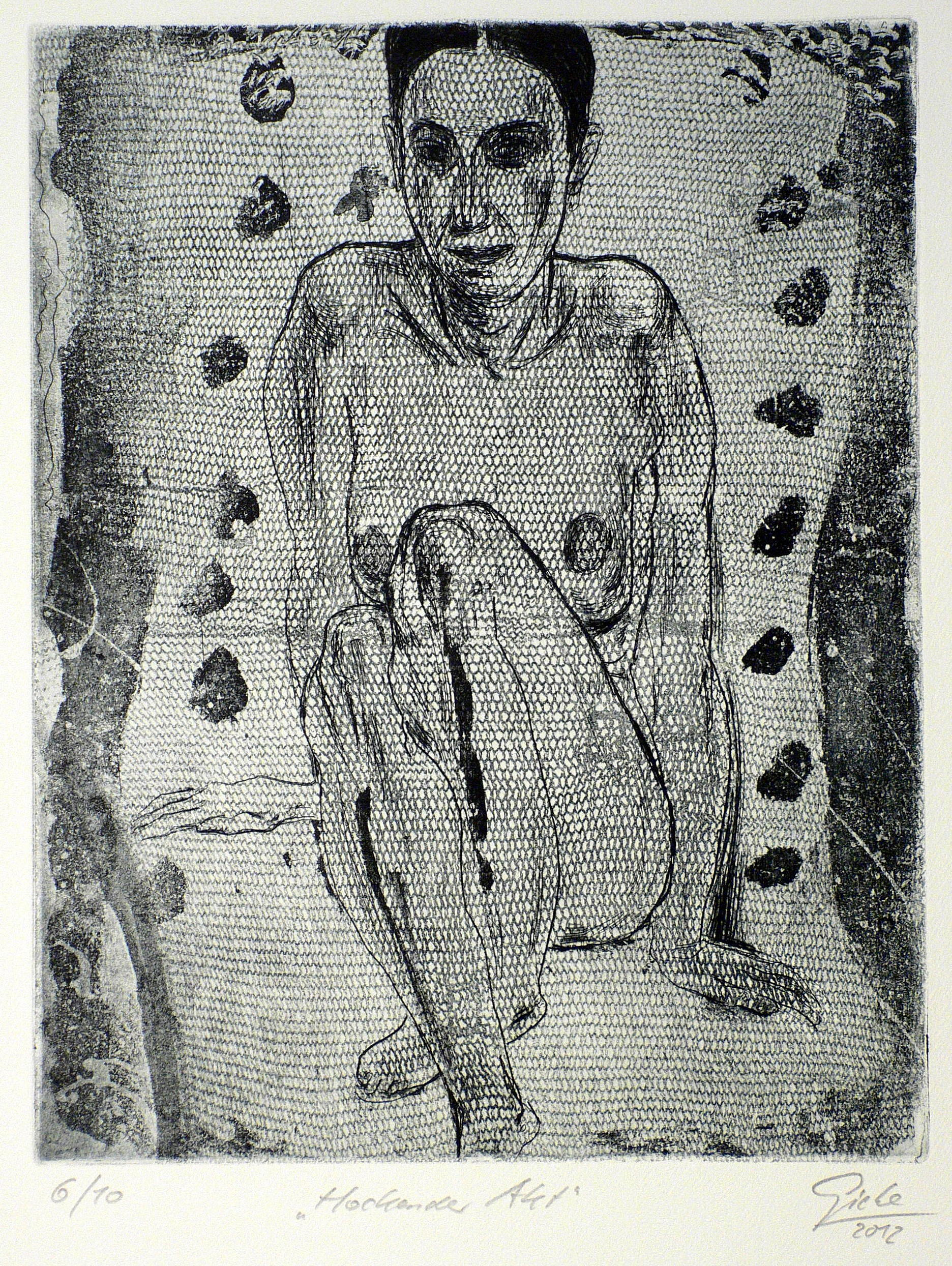 2012. Radierung / Vernis mou, Strichätzung & Aquatinta, in Schwarz, auf hellchamois Büttenpapier. – Originale Künstlergrafik, von Hubertus Giebe. – Auflage Exemplar Nr. 6/10. – 31,8 x 24,8 cm (Darstellung / Platte), 54 x 39 cm (Blatt).