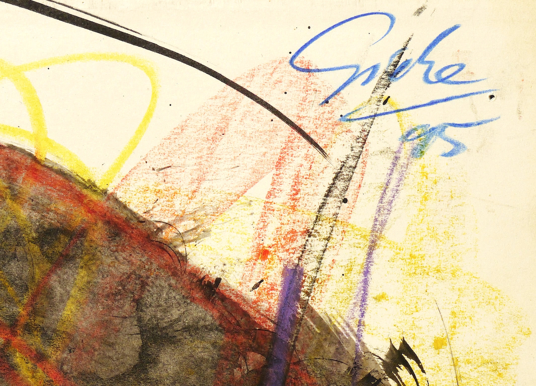 1995. Mischtechnik / Tusche & Farbkreide, auf Papier. – Originale Künstlergrafik, von Hubertus Giebe. – Unikat. – 60,0 x 49,5 cm (Darstellung / Blatt).