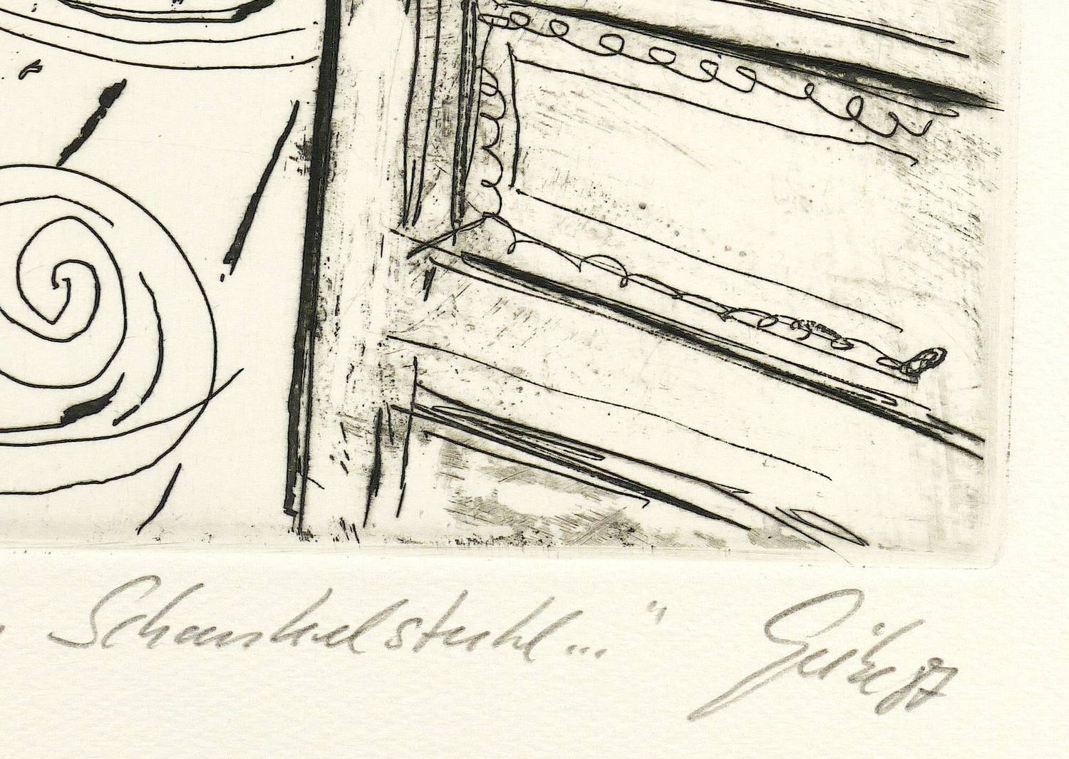 1987. Radierung / Aquatinta & Strichätzung, auf Hahnemühle-Bütten. – Originale Künstlergrafik, von Hubertus Giebe. – Auflage Exemplar Nr. 29/110. – 34,2 x 24,6 cm (Darstellung / Platte), 48 x 36 cm (Blatt).