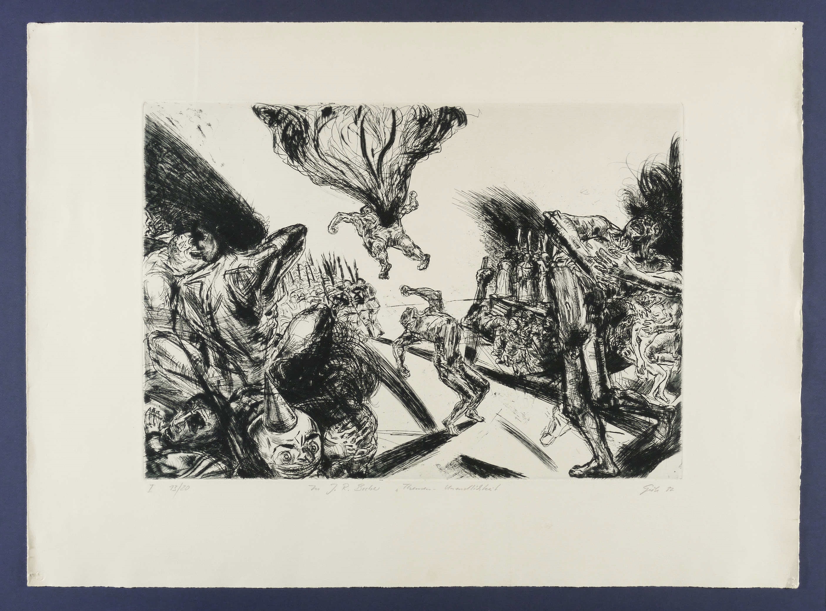 Rechts unten in Bleistift signiert und datiert. LInks Auflagenbezeichnung. Mittig Titel. – Papier mit leichten Randmängeln, Ecken etwas bestoßen, geringfügig angeschmutzt. Sonst gut erhalten.