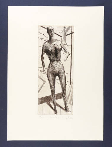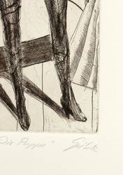 1982. Radierung / Strichätzung & Roulette, mit Plattenton, in Rotschwarz, auf Weißenborn-Bütten. – Von Hubertus Giebe. – Auflage Exemplar Nr. 19/50. – 31,7 x 12,5 cm (Darstellung / Platte), 48 x 34 cm (Blatt).
