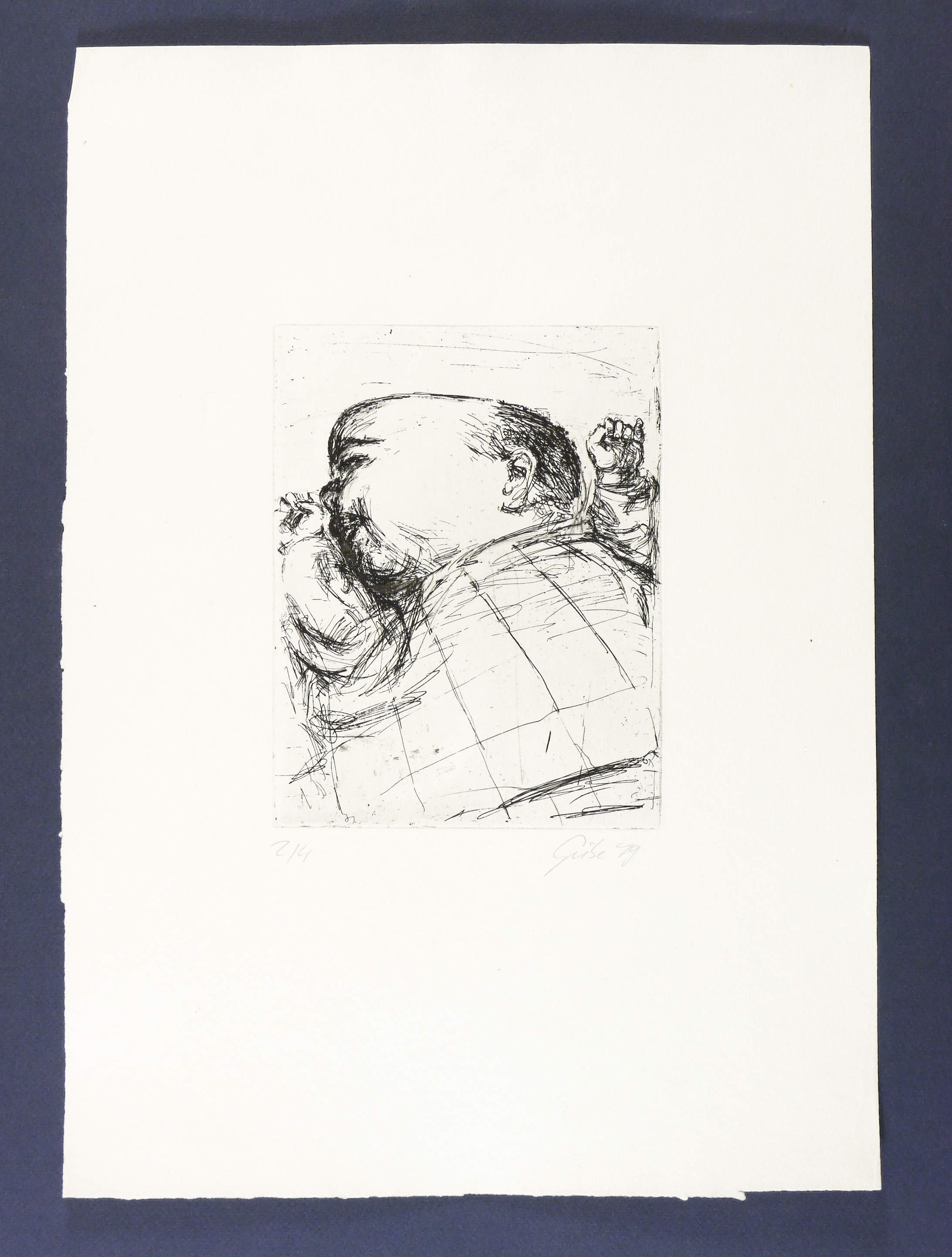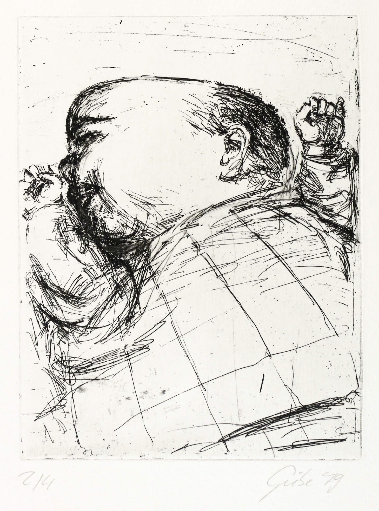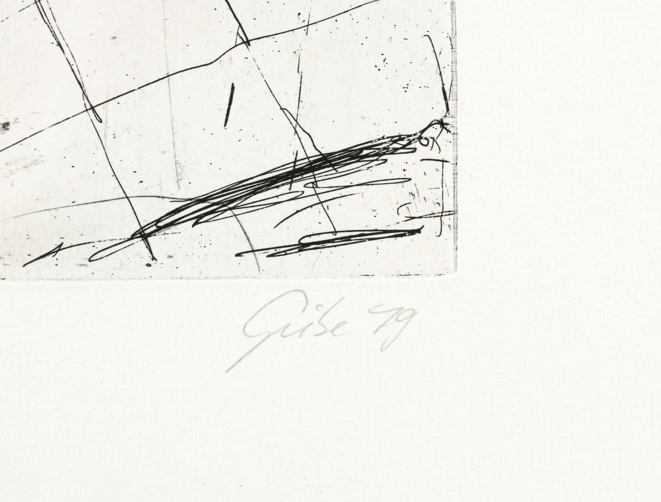 1979. Radierung / Strichätzung, in Schwarz, auf Weißenborn-Bütten. – Von Hubertus Giebe. – Auflage Exemplar Nr. 2/4. – 19,9 x 15,4 cm (Darstellung / Platte), 45,5 x 32,5 cm (Blatt).